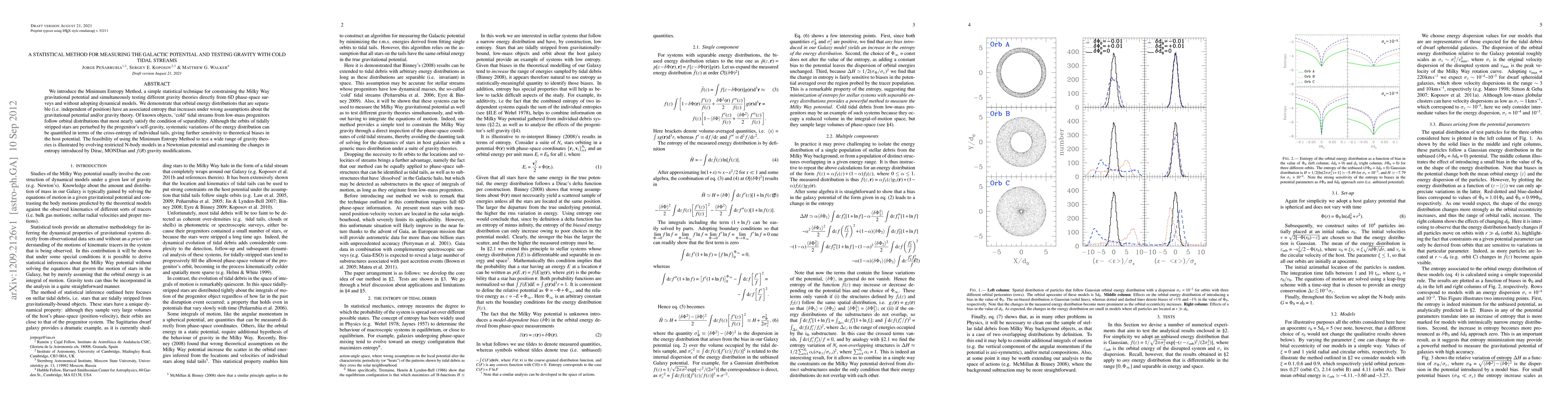 We introduce the Minimum Entropy Method, a simple statistical technique for constraining the Milky Way gravitational potential and simultaneously testing different gravity theories directly from 6D phase-space surveys and without adopting dynamical models. We demonstrate that orbital energy distributions that are separable (i.e. independent of position) have an associated entropy that increases under wrong assumptions about the gravitational potential and/or gravity theory. Of known objects, `cold' tidal streams from low-mass progenitors follow orbital distributions that most nearly satisfy the condition of separability. Although the orbits of tidally stripped stars are perturbed by the progenitor's self-gravity, systematic variations of the energy distribution can be quantified in terms of the cross-entropy of individual tails, giving further sensitivity to theoretical biases in the host potential. The feasibility of using the Minimum Entropy Method to test a wide range of gravity theories is illustrated by evolving restricted N-body models in a Newtonian potential and examining the changes in entropy introduced by Dirac, MONDian and f(R) gravity modifications.