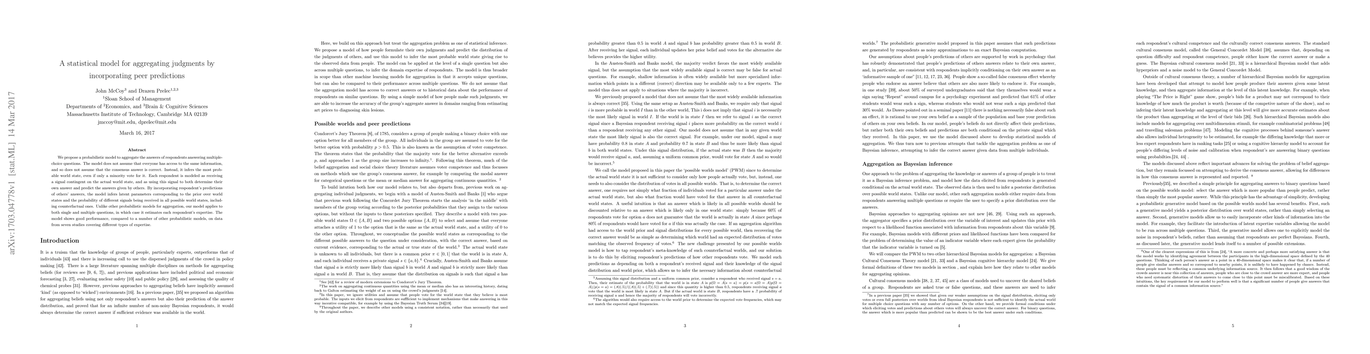 We propose a probabilistic model to aggregate the answers of respondents answering multiple-choice questions. The model does not assume that everyone has access to the same information, and so does not assume that the consensus answer is correct. Instead, it infers the most probable world state, even if only a minority vote for it. Each respondent is modeled as receiving a signal contingent on the actual world state, and as using this signal to both determine their own answer and predict the answers given by others. By incorporating respondent's predictions of others' answers, the model infers latent parameters corresponding to the prior over world states and the probability of different signals being received in all possible world states, including counterfactual ones. Unlike other probabilistic models for aggregation, our model applies to both single and multiple questions, in which case it estimates each respondent's expertise. The model shows good performance, compared to a number of other probabilistic models, on data from seven studies covering different types of expertise.