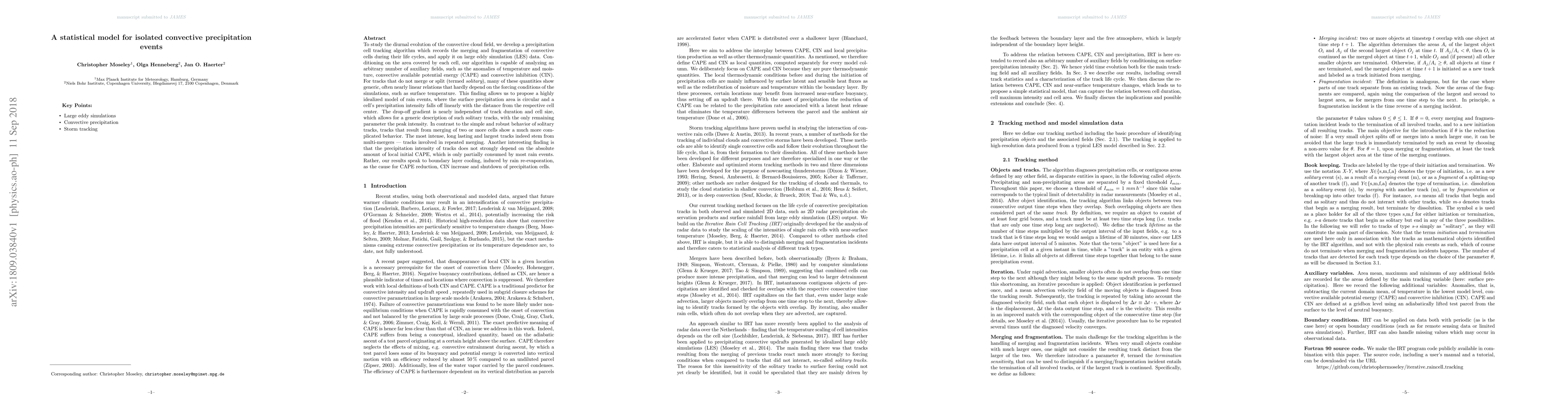 A new model proposes that isolated convective precipitation events follow a circular shape with intensity decreasing linearly with distance from the center, regardless of track duration or cell size. The model suggests that rain events do not strongly depend on initial CAPE but rather on boundary layer cooling caused by re-evaporation.