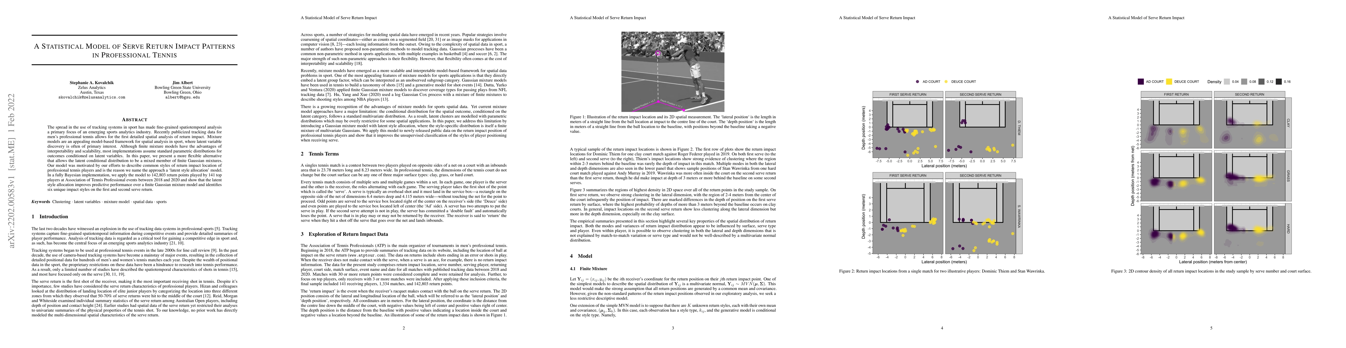 This paper introduces a latent style allocation model for analyzing serve return impact patterns in professional tennis using tracking data, demonstrating improved predictive performance and identifying six distinct return impact styles compared to traditional finite Gaussian mixture models.