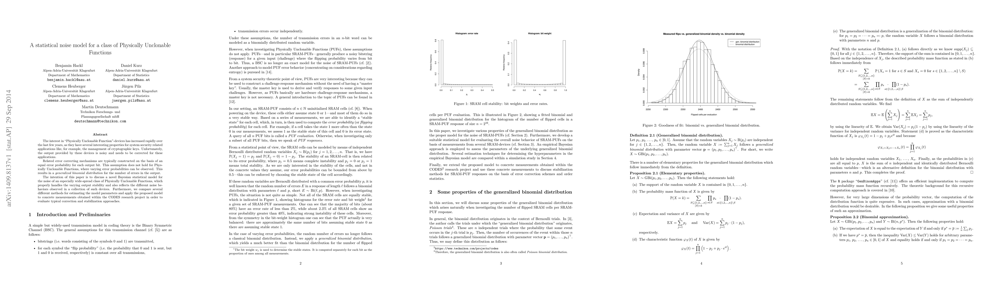 The interest in "Physically Unclonable Function"-devices has increased rapidly over the last few years, as they have several interesting properties for system security related applications like, for example, the management of cryptographic keys. Unfortunately, the output provided by these devices is noisy and needs to be corrected for these applications. Related error correcting mechanisms are typically constructed on the basis of an equal error probability for each output bit. This assumption does not hold for Physically Unclonable Functions, where varying error probabilities can be observed. This results in a generalized binomial distribution for the number of errors in the output. The intention of this paper is to discuss a novel Bayesian statistical model for the noise of an especially wide-spread class of Physically Unclonable Functions, which properly handles the varying output stability and also reflects the different noise behaviors observed in a collection of such devices. Furthermore, we compare several different methods for estimating the model parameters and apply the proposed model to concrete measurements obtained within the CODES research project in order to evaluate typical correction and stabilization approaches.