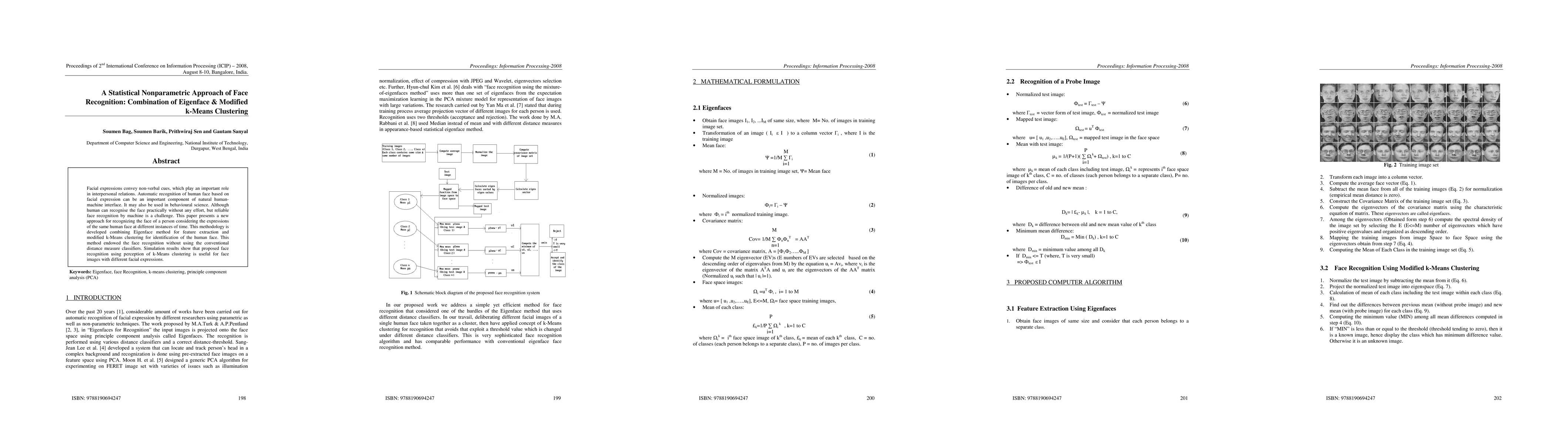 This paper proposes a novel face recognition system using Eigenface method for feature extraction and modified k-Means clustering, eliminating the need for traditional distance measure classifiers. The approach successfully recognizes faces with various expressions, showcasing its potential for human-machine interfaces and behavioral science applications.