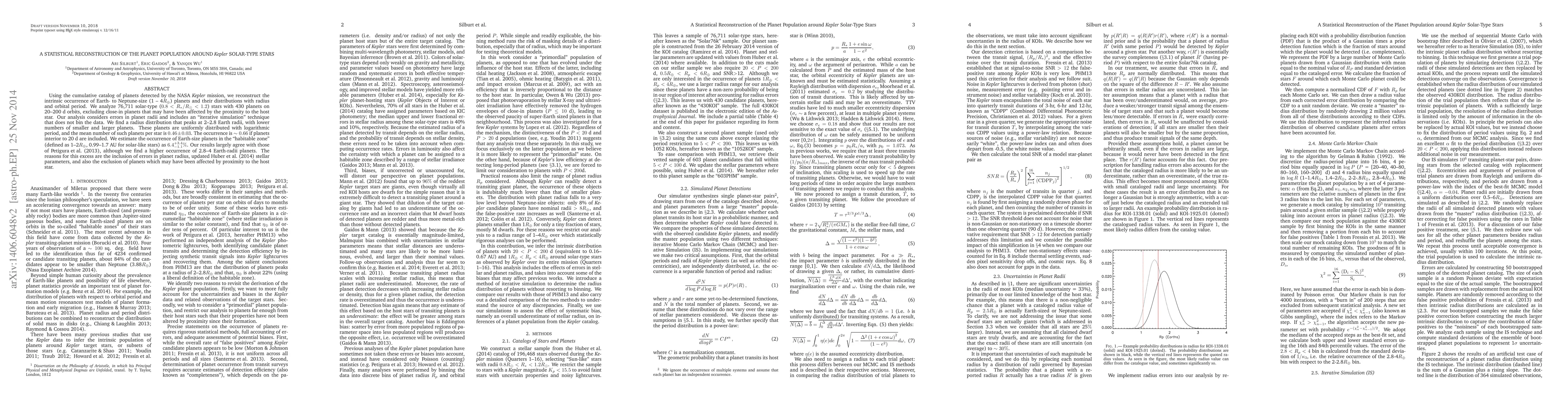 This study uses data from the Kepler mission to statistically reconstruct the population of Earth- to Neptune-sized planets around solar-type stars, revealing a peak in planet radius distribution at 2-2.8 Earth radii. The analysis finds a mean of 0.46 such planets per star, with an estimated 6.4% occurrence of Earth-sized planets in the habitable zone.