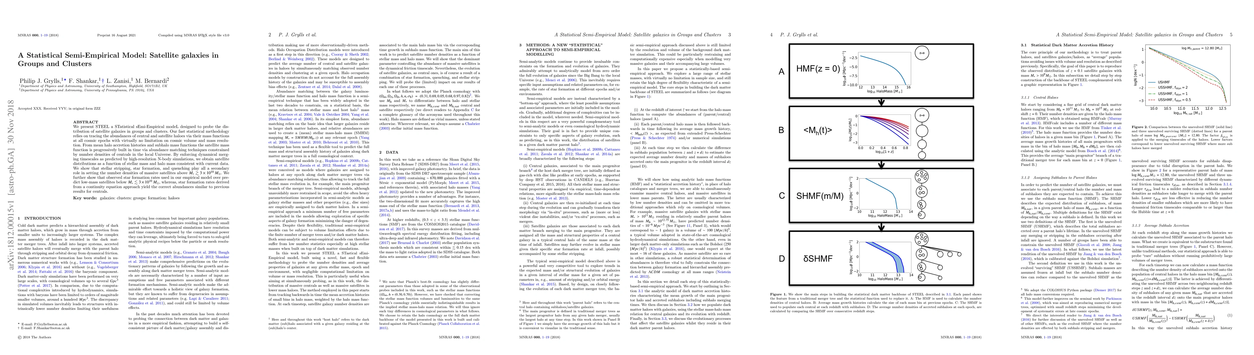 The paper introduces STEEL, a statistical semi-empirical model to study satellite galaxies in groups and clusters, emphasizing its reliance on mass functions and dynamical merging timescales. The model shows that stellar stripping and quenching have minor effects on the number densities of massive satellites, while over-predicting low-mass satellite abundances.