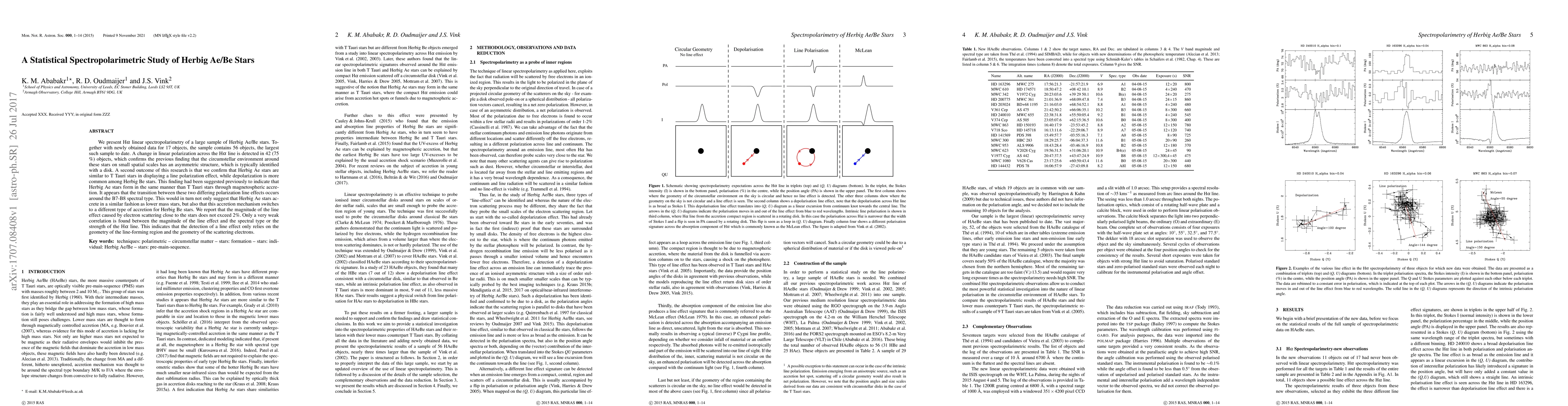 The study identifies a significant break in spectropolarimetric properties and accretion mechanisms around the B7-B8 spectral type, distinguishing Herbig Ae and Be stars and offering new insights into the formation of intermediate and massive stars.