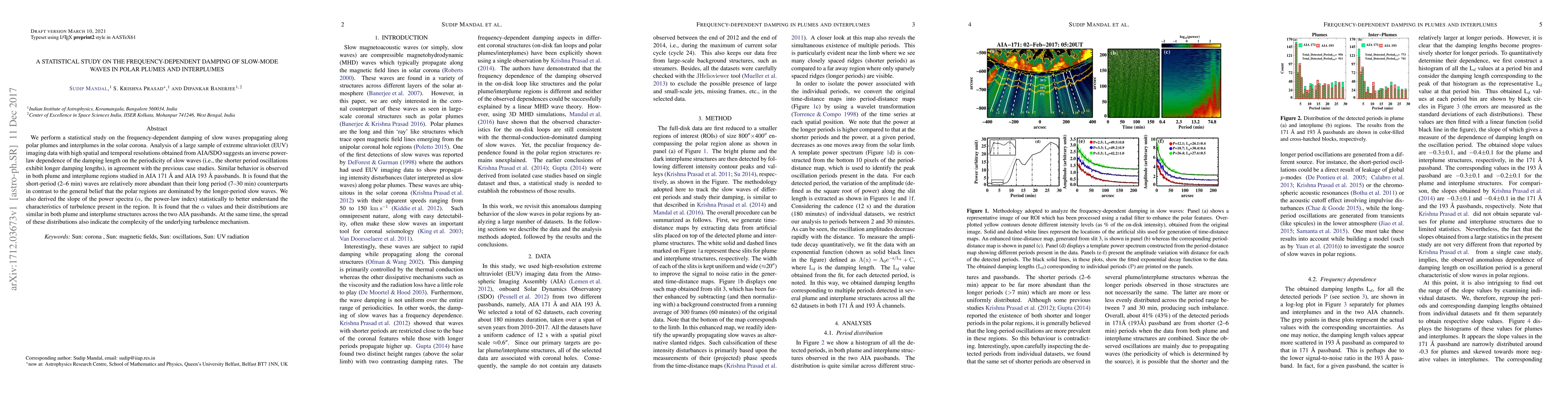 Researchers studied frequency-dependent damping of slow waves in polar plumes and interplumes, finding an inverse power-law dependence on wave periodicity and a shift in dominance from long to short period waves, with implications for our understanding of solar corona turbulence.