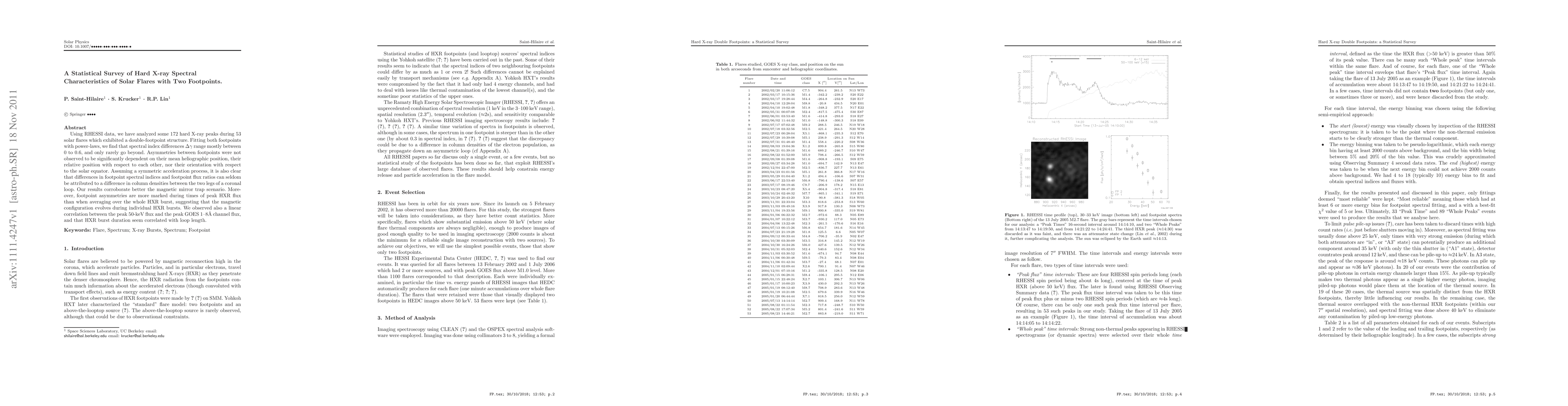 A study of 172 hard X-ray peaks during 53 solar flares with double-footpoint structures found that spectral index differences range mostly between 0 to 0.6, supporting the magnetic mirror trap scenario and suggesting a correlation between HXR burst duration and loop length.