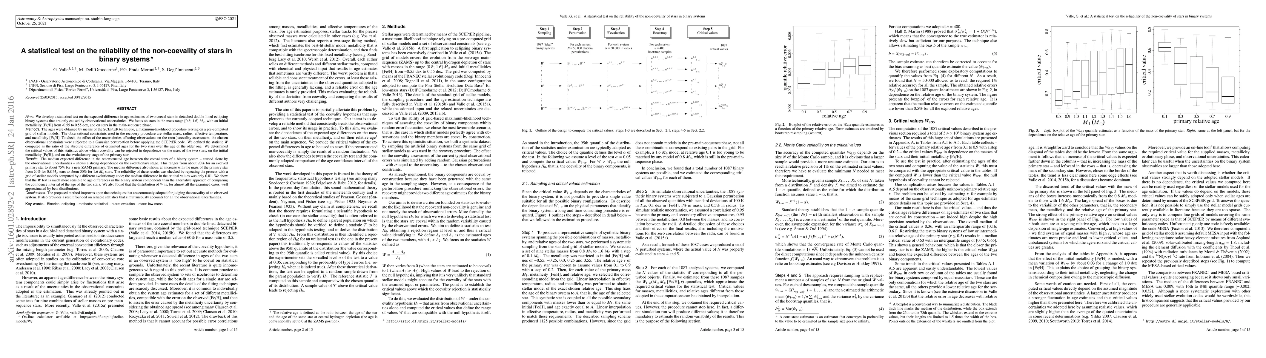 We develop a statistical test on the expected difference in age estimates of two coeval stars in detached double-lined eclipsing binary systems that are only caused by observational uncertainties. We focus on stars in the mass range [0.8; 1.6] Msun, and on stars in the main-sequence phase. The ages were obtained by means of the maximum-likelihood SCEPtER technique. The observational constraints used in the recovery procedure are stellar mass, radius, effective temperature, and metallicity [Fe/H]. We defined the statistic W computed as the ratio of the absolute difference of estimated ages for the two stars over the age of the older one. We determined the critical values of this statistics above which coevality can be rejected. The median expected difference in the reconstructed age between the coeval stars of a binary system -- caused alone by the observational uncertainties -- shows a strong dependence on the evolutionary stage. This ranges from about 20% for an evolved primary star to about 75% for a near ZAMS primary. The median difference also shows an increase with the mass of the primary star from 20% for 0.8 Msun stars to about 50% for 1.6 Msun stars. The reliability of these results was checked by repeating the process with a grid of stellar models computed by a different evolutionary code. We show that the W test is much more sensible to age differences in the binary system components than the alternative approach of comparing the confidence interval of the age of the two stars. We also found that the distribution of W is, for almost all the examined cases, well approximated by beta distributions. The proposed method improves upon the techniques that are commonly adopted for judging the coevality of an observed system. It also provides a result founded on reliable statistics that simultaneously accounts for all the observational uncertainties.