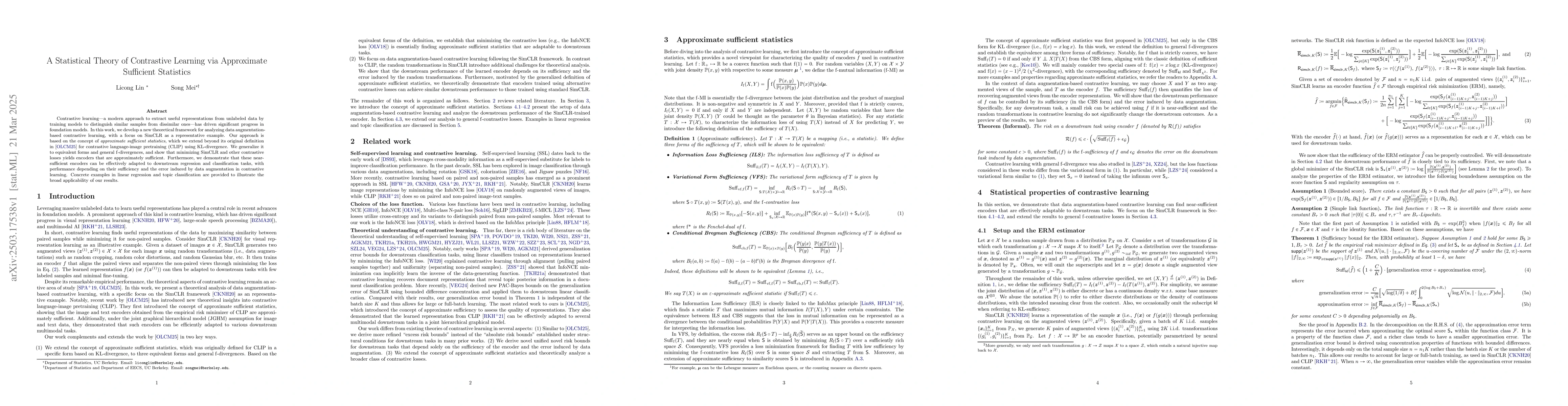 This research extends the concept of approximate sufficient statistics to contrastive learning, providing a statistical theory that differentiates it from previous empirical analyses.