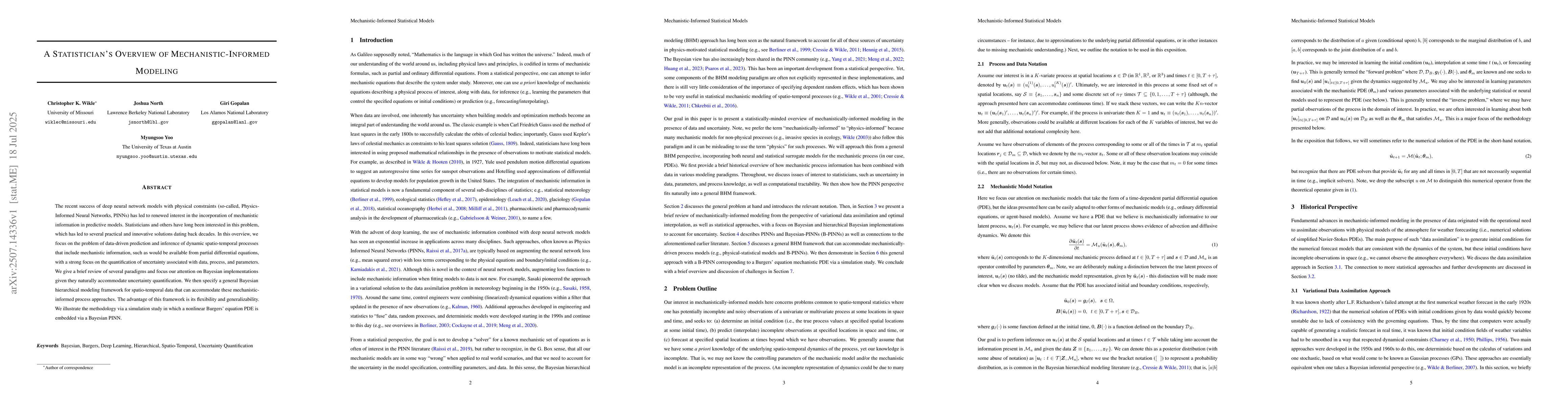 The recent success of deep neural network models with physical constraints (so-called, Physics-Informed Neural Networks, PINNs) has led to renewed interest in the incorporation of mechanistic information in predictive models. Statisticians and others have long been interested in this problem, which has led to several practical and innovative solutions dating back decades. In this overview, we focus on the problem of data-driven prediction and inference of dynamic spatio-temporal processes that include mechanistic information, such as would be available from partial differential equations, with a strong focus on the quantification of uncertainty associated with data, process, and parameters. We give a brief review of several paradigms and focus our attention on Bayesian implementations given they naturally accommodate uncertainty quantification. We then specify a general Bayesian hierarchical modeling framework for spatio-temporal data that can accommodate these mechanistic-informed process approaches. The advantage of this framework is its flexibility and generalizability. We illustrate the methodology via a simulation study in which a nonlinear Burgers' equation PDE is embedded via a Bayesian PINN.