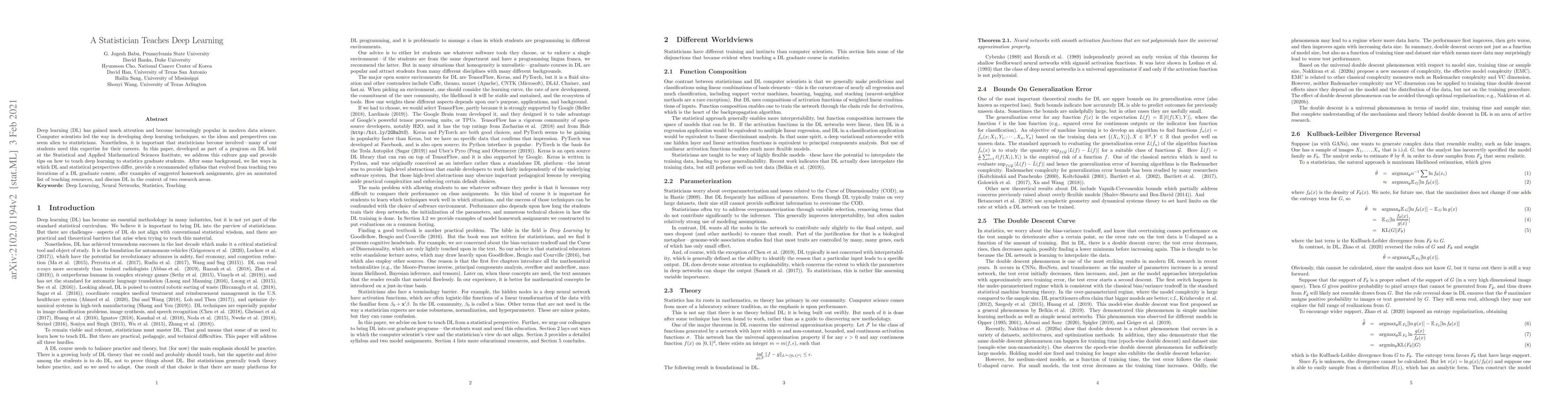 This paper aims to bridge the culture gap between deep learning and statistics by offering guidance on teaching deep learning to statistics graduate students. It provides a syllabus, homework examples, and teaching resources, while discussing the differences in perspectives and applications in two research areas.