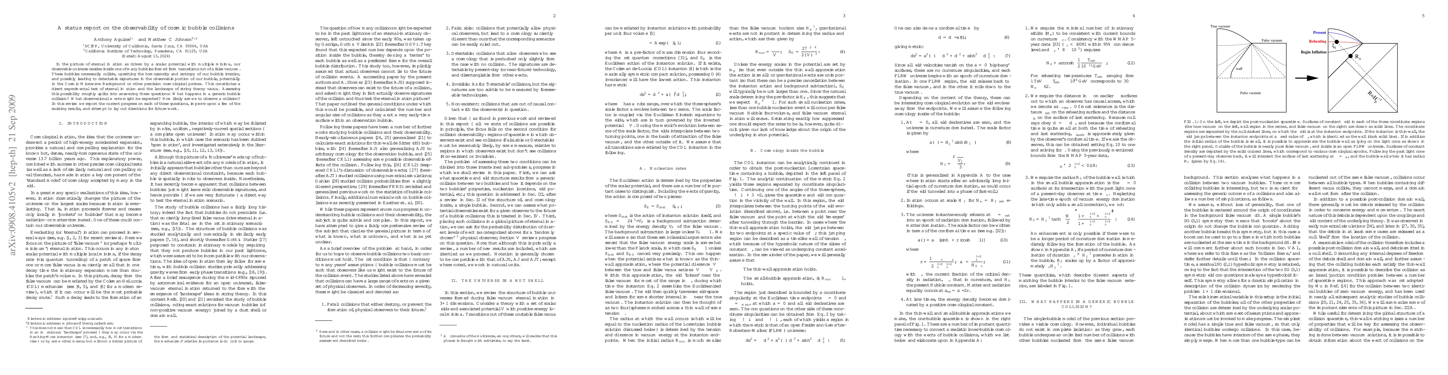 This paper reviews the current understanding of cosmic bubble collisions in the context of eternal inflation, assessing their potential observability through signatures in the Cosmic Microwave Background and other cosmological probes. It summarizes progress in understanding collision dynamics, expected observational effects, and the likelihood of detection, while outlining future research directions.