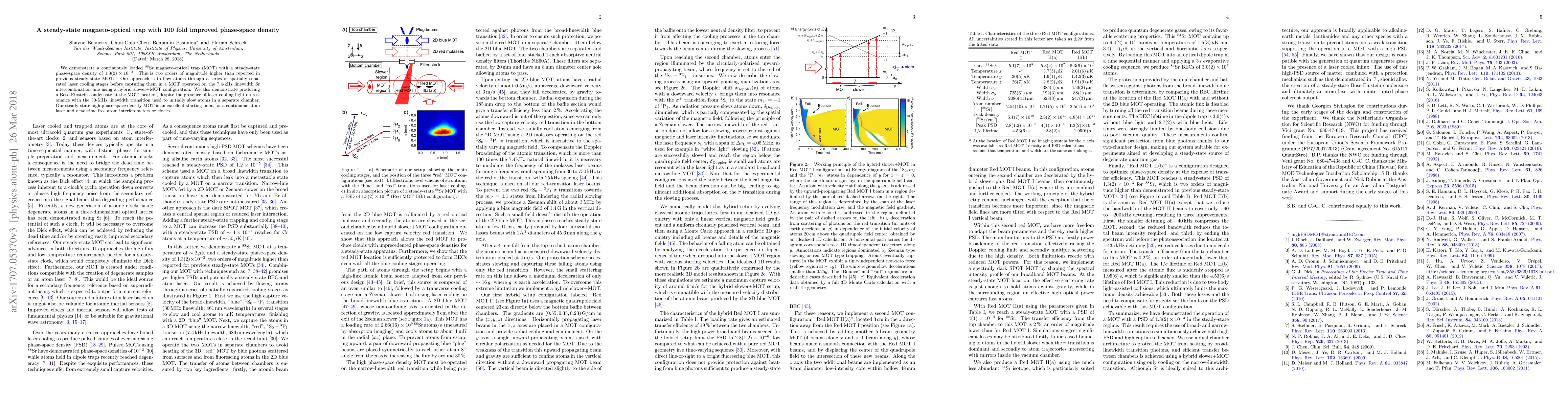 The research presents a novel continuously loaded strontium-88 magneto-optical trap (MOT) achieving a steady-state phase-space density 100 times higher than previous records. This is accomplished by a hybrid slower+MOT configuration that sequentially cools atoms via spatially separated stages before capturing them in a MOT on a narrow intercombination line. Despite cooling light on a broad transition, the system also produces Bose-Einstein condensates at the MOT location. This advancement paves the way for continuous atom lasers and dead-time free atom interferometers or clocks.