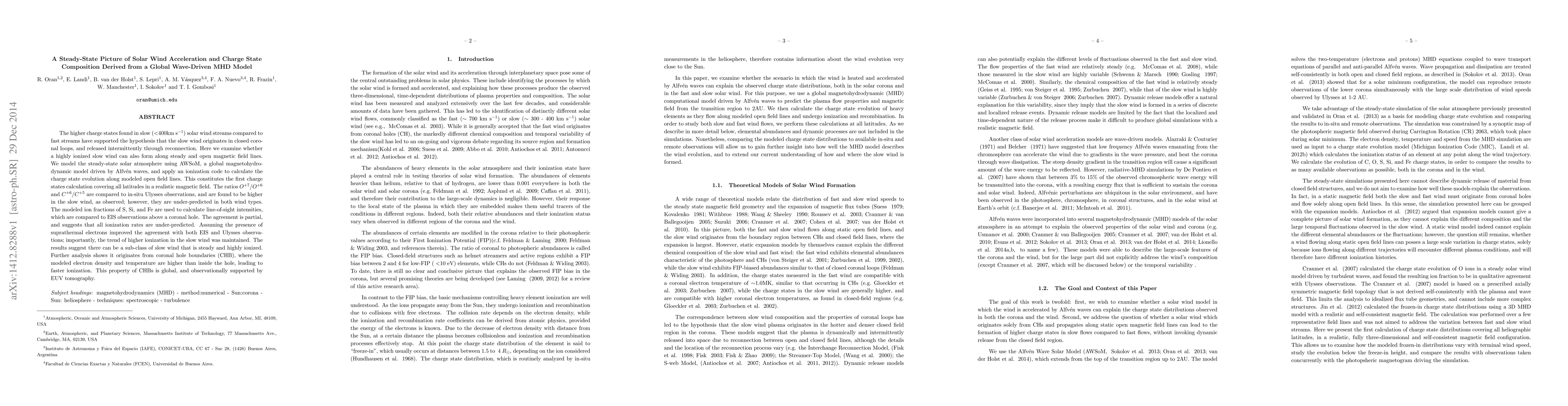 This study uses a global MHD model driven by Alfvén waves to investigate the steady-state solar wind acceleration and charge state composition, finding that a highly ionized sub-class of slow wind can form along open magnetic field lines, particularly at coronal hole boundaries. The model shows partial agreement with observations, suggesting under-predicted ionization rates, but improved alignment when suprathermal electrons are considered.