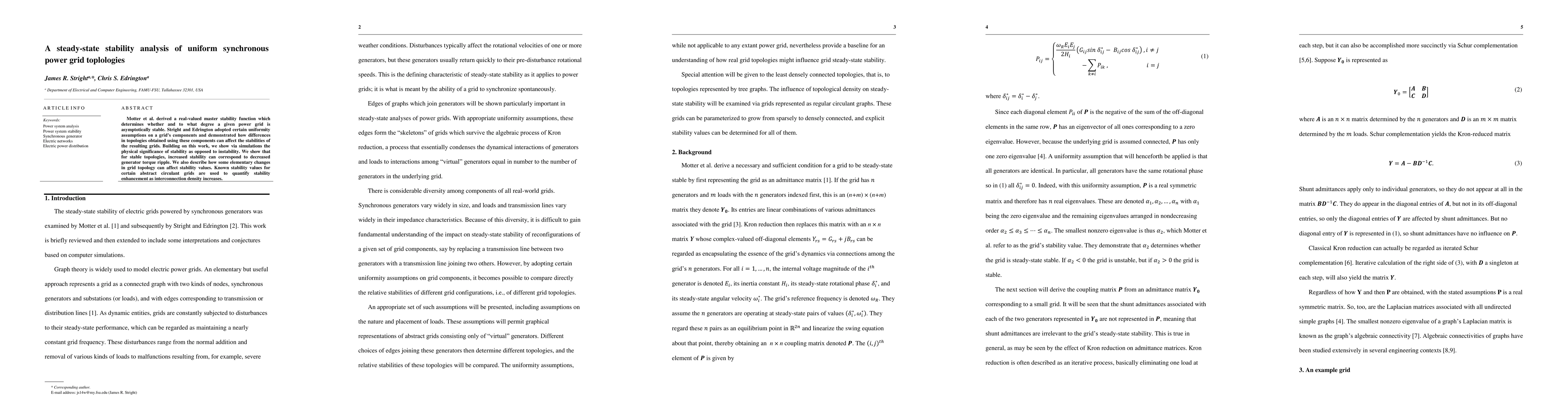 Motter et al. derived a real-valued master stability function which determines whether and to what degree a given power grid is asymptotically stable. Stright and Edrington adopted certain uniformity assumptions on a grid's components and demonstrated how differences in topologies obtained using these components can affect the stabilities of the resulting grids. Building on this work, we show via simulations the physical significance of stability as opposed to instability. We show that for stable topologies, increased stability can correspond to decreased generator torque ripple. We also describe how some elementary changes in grid topology can affect stability values. Known stability values for certain abstract circulant grids are used to quantify stability enhancement as interconnection density increases.