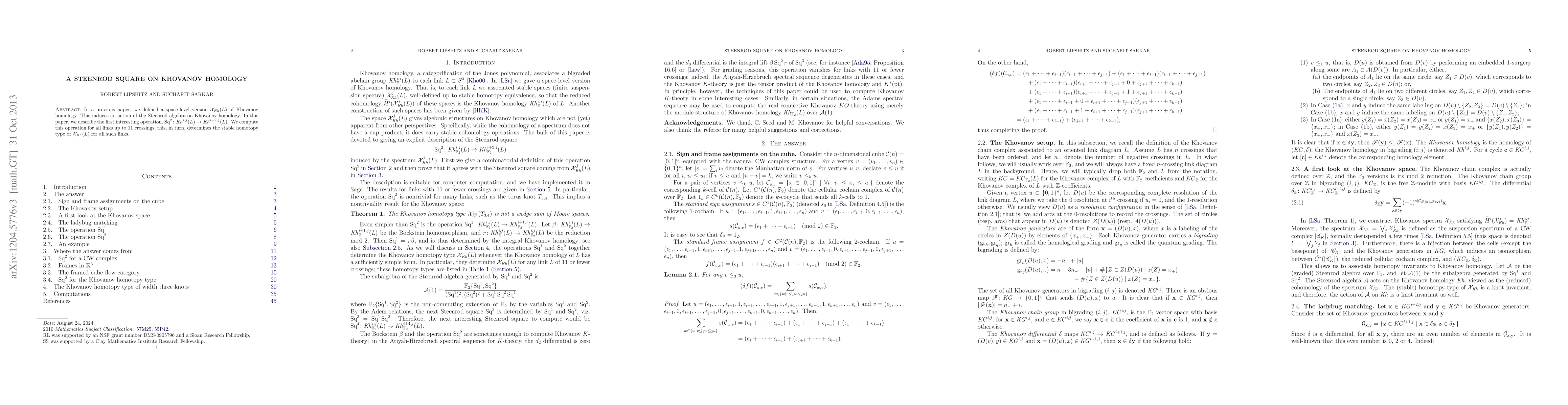 This paper introduces a Steenrod square operation, Sq^2, on Khovanov homology, defined via a space-level version of Khovanov homology, X(L). The authors compute Sq^2 for links with up to 11 crossings, thereby determining the stable homotopy type of X(L) for these links.