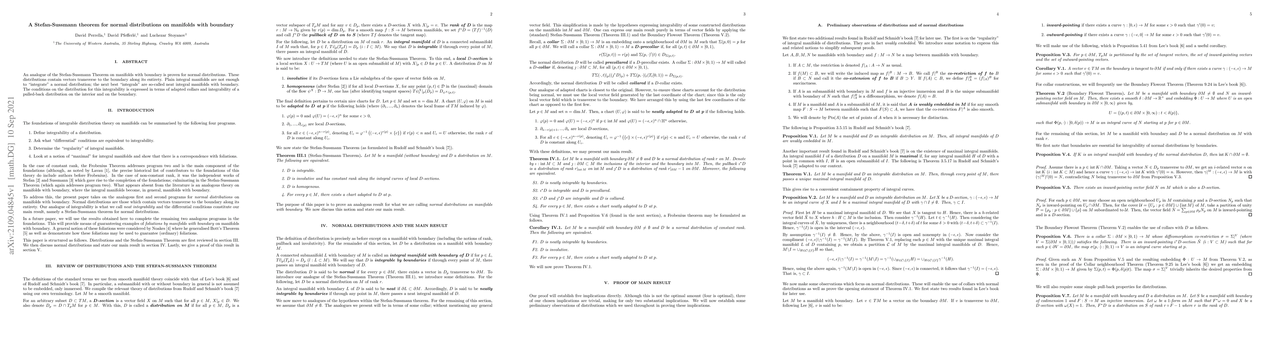 This paper presents an extension of the Stefan-Sussmann Theorem applicable to normal distributions on manifolds with boundary. It introduces 'neat integral manifolds with boundary' as the optimal solution for integrating such distributions, which include vectors transverse to the boundary, and outlines conditions for integrability using adapted collars and pulled-back distributions on both the interior and boundary of the manifold.