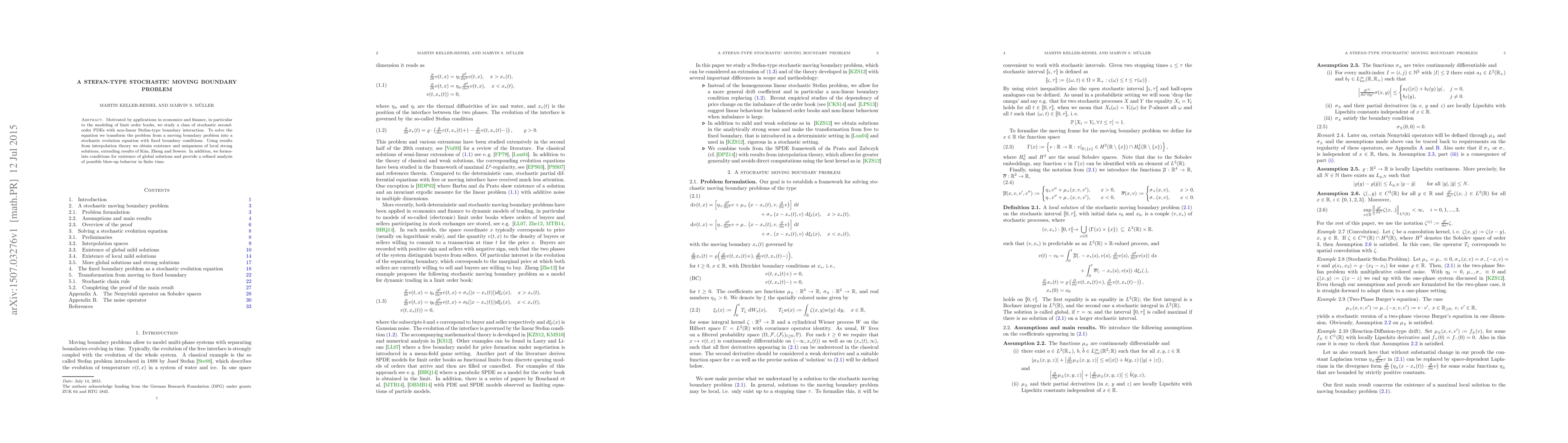 Motivated by applications in economics and finance, in particular to the modeling of limit order books, we study a class of stochastic second-order PDEs with non-linear Stefan-type boundary interaction. To solve the equation we transform the problem from a moving boundary problem into a stochastic evolution equation with fixed boundary conditions. Using results from interpolation theory we obtain existence and uniqueness of local strong solutions, extending results of Kim, Zheng and Sowers. In addition, we formulate conditions for existence of global solutions and provide a refined analysis of possible blow-up behavior in finite time.