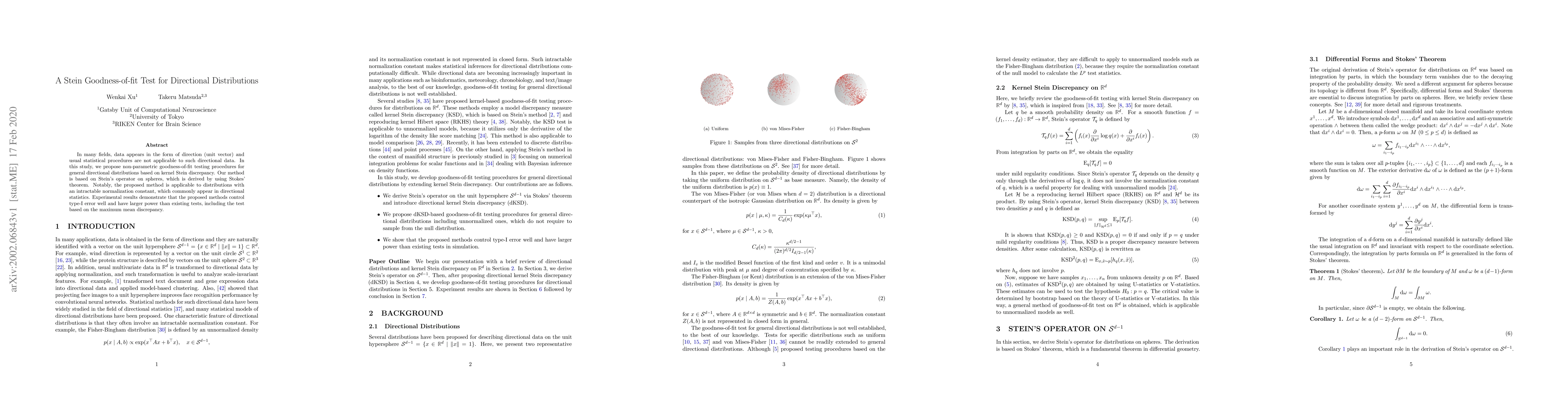 This paper proposes a new non-parametric goodness-of-fit test for directional distributions based on kernel Stein discrepancy and Stein's operator on spheres, demonstrating better control of type-I error and higher power compared to existing methods. The method is particularly useful for distributions with intractable normalization constants.