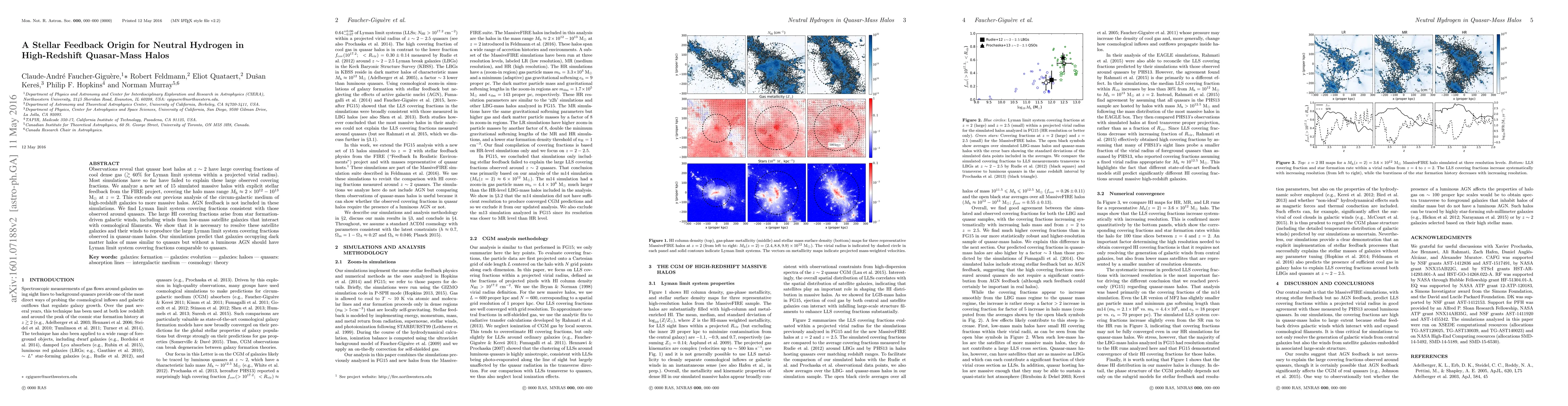 Observations reveal that quasar host halos at z~2 have large covering fractions of cool dense gas (>~60% for Lyman limit systems within a projected virial radius). Most simulations have so far have failed to explain these large observed covering fractions. We analyze a new set of 15 simulated massive halos with explicit stellar feedback from the FIRE project, covering the halo mass range M_h~2x10^12-10^13 Msun at z=2. This extends our previous analysis of the circum-galactic medium of high-redshift galaxies to more massive halos. AGN feedback is not included in these simulations. We find Lyman limit system covering fractions consistent with those observed around quasars. The large HI covering fractions arise from star formation-driven galactic winds, including winds from low-mass satellite galaxies that interact with cosmological filaments. We show that it is necessary to resolve these satellite galaxies and their winds to reproduce the large Lyman limit system covering fractions observed in quasar-mass halos. Our simulations predict that galaxies occupying dark matter halos of mass similar to quasars but without a luminous AGN should have Lyman limit system covering fractions comparable to quasars.
