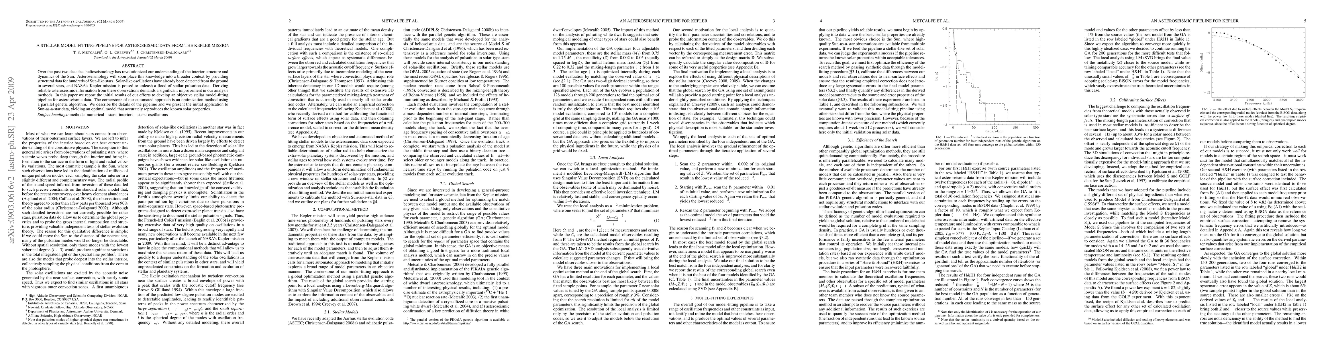 This paper introduces a new stellar model-fitting pipeline for analyzing asteroseismic data from NASA's Kepler mission, employing an optimization method with a parallel genetic algorithm. Initial results demonstrate the pipeline's effectiveness in accurately reproducing known solar properties using Sun-as-a-star data.