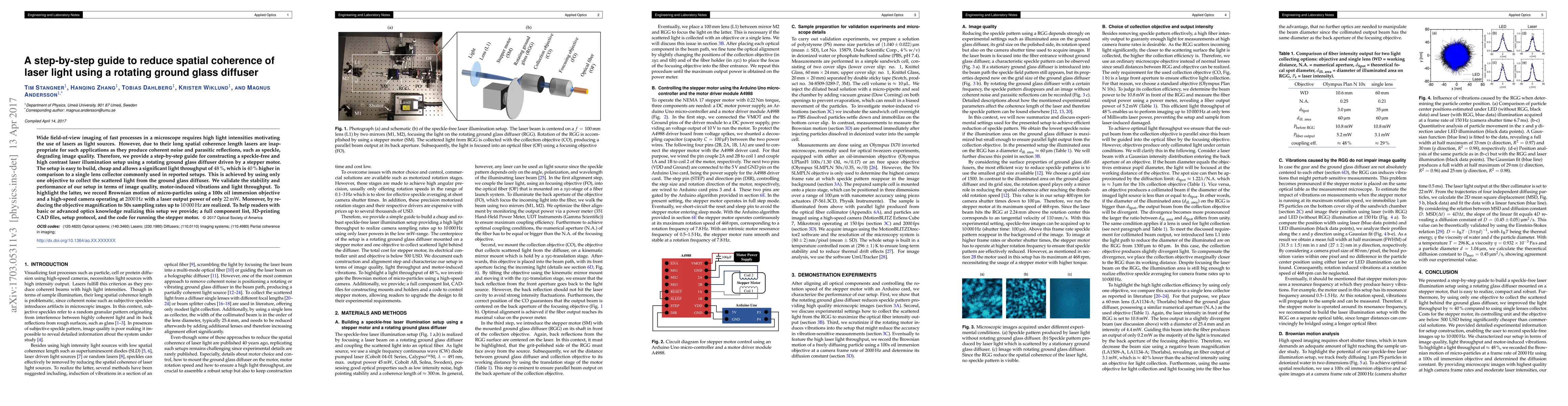 Wide field-of-view imaging of fast processes in a microscope requires high light intensities motivating the use of lasers as light sources. However, due to their long spatial coherence length lasers are inappropriate for such applications as they produce coherent noise and parasitic reflections, such as speckle, degrading image quality. Therefore, we provide a step-by-step guide for constructing a speckle-free and high contrast laser illumination setup using a rotating ground glass diffuser driven by a stepper motor. The setup is easy to build, cheap and allows a significant light throughput of 48 %, which is 40 % higher in comparison to a single lens collector commonly used in reported setups. This is achieved by using only one objective to collect the scattered light from the ground glass diffuser. We validate the stability and performance of our setup in terms of image quality, motor-induced vibrations and light throughput. To highlight the latter, we record Brownian motion of micro-particles using a 100x oil immersion objective and a high-speed camera operating at 2 000 Hz with a laser output power of only 22 mW. Moreover, by reducing the objective magnification to 50x sampling rates up to 10 000 Hz are realized. To help readers with basic or advanced optics knowledge realizing this setup we provide; a full component list, 3D-printing CAD files, setup protocol, and the code for running the stepper motor.