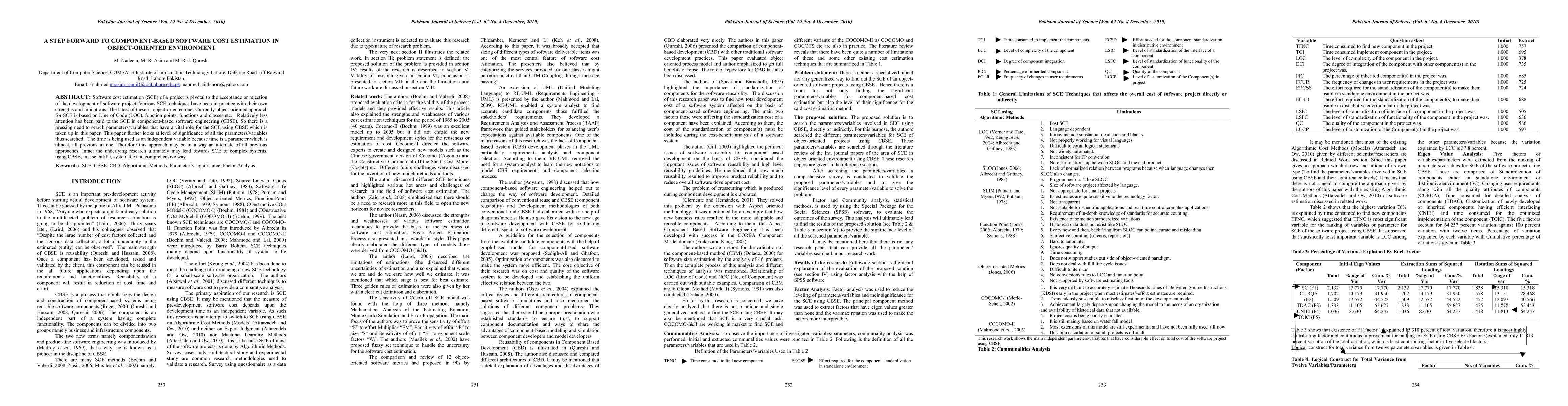 Software cost estimation (SCE) of a project is pivotal to the acceptance or rejection of the development of software project. Various SCE techniques have been in practice with their own strengths and limitations. The latest of these is object-oriented one. Currently object-oriented approach for SCE is based on Line of Code (LOC), function points, functions and classes etc. Relatively less attention has been paid to the SCE in component-based software engineering (CBSE). So there is a pressing need to search parameters/variables that have a vital role for the SCE using CBSE which is taken up in this paper. This paper further looks at level of significance of all the parameters/variables thus searched. The time is being used as an independent variable because time is a parameter which is almost, all previous in one. Therefore this approach may be in a way an alternate of all previous approaches. Infact the underlying research ultimately may lead towards SCE of complex systems, using CBSE, in a scientific, systematic and comprehensive way.