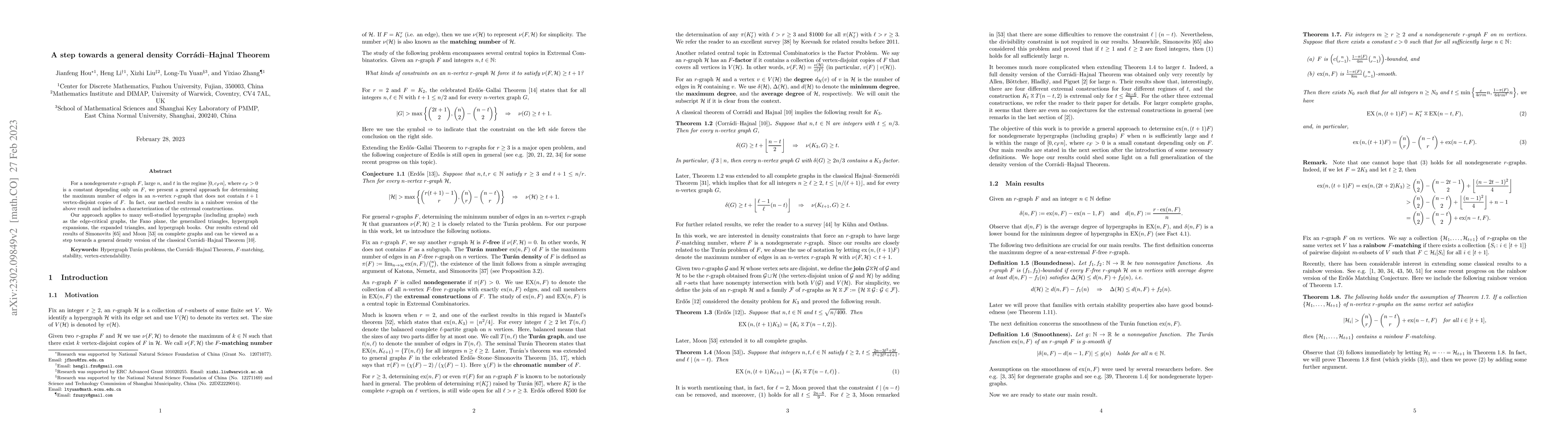For a nondegenerate $r$-graph $F$, large $n$, and $t$ in the regime $[0, c_{F} n]$, where $c_F>0$ is a constant depending only on $F$, we present a general approach for determining the maximum number of edges in an $n$-vertex $r$-graph that does not contain $t+1$ vertex-disjoint copies of $F$. In fact, our method results in a rainbow version of the above result and includes a characterization of the extremal constructions. Our approach applies to many well-studied hypergraphs (including graphs) such as the edge-critical graphs, the Fano plane, the generalized triangles, hypergraph expansions, the expanded triangles, and hypergraph books. Our results extend old results of Simonovits~\cite{SI68} and Moon~\cite{Moon68} on complete graphs and can be viewed as a step towards a general density version of the classical Corr\'{a}di--Hajnal Theorem~\cite{CH63}.