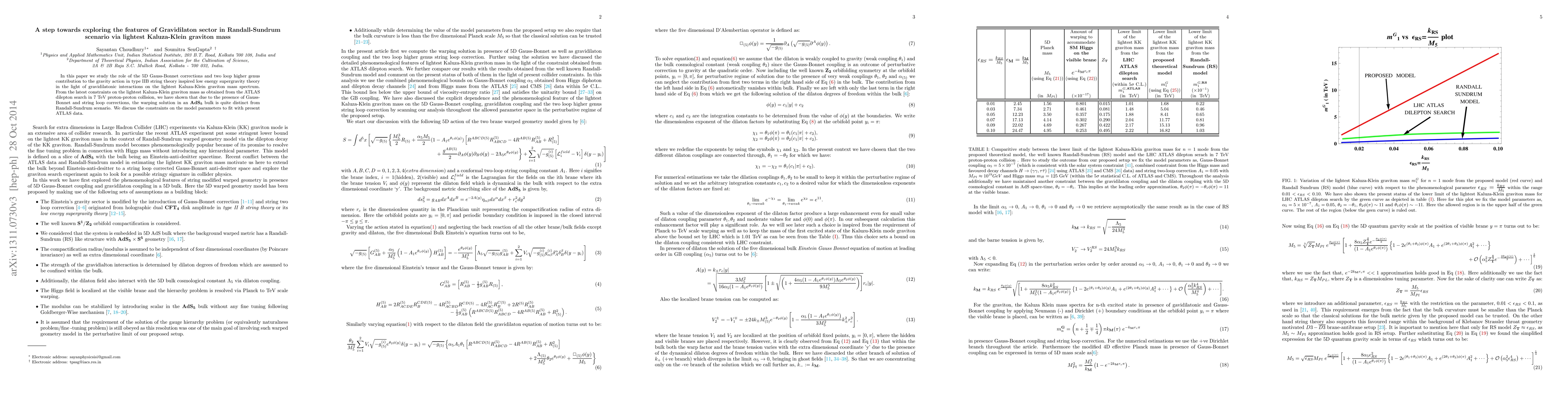 This paper investigates the impact of 5D Gauss-Bonnet corrections and two-loop higher genus contributions on the gravidilatonic interactions and the mass spectrum of the lightest Kaluza-Klein graviton in the Randall-Sundrum scenario. It shows that these corrections lead to a distinct warping solution in an AdS5 bulk, differing from the standard RS model, and discusses constraints on model parameters to align with ATLAS data.