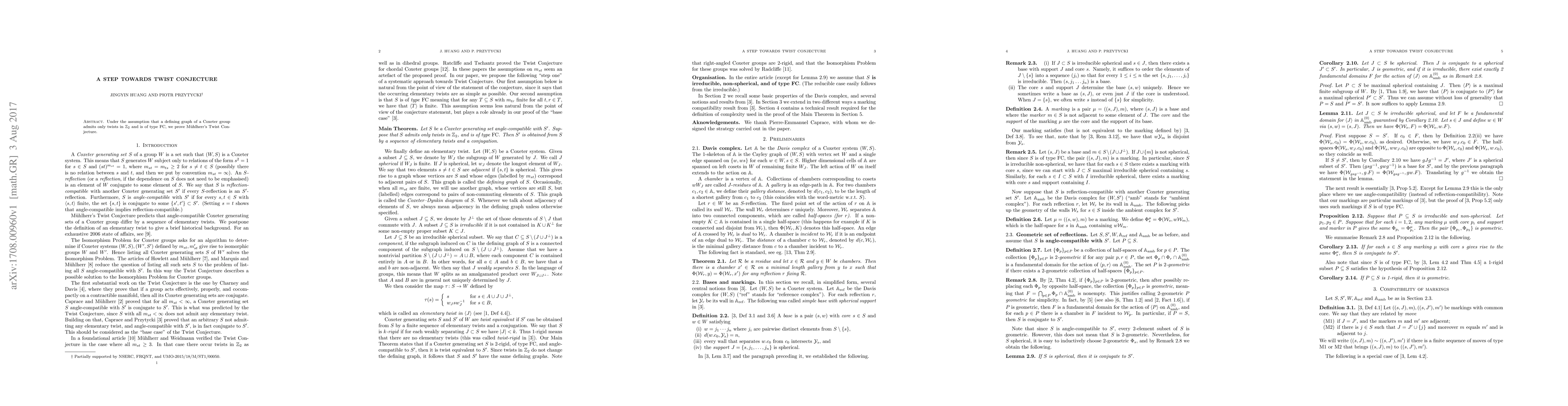 Researchers prove M"uhlherr's Twist Conjecture under specific conditions for Coxeter groups, a significant achievement in group theory and combinatorics.