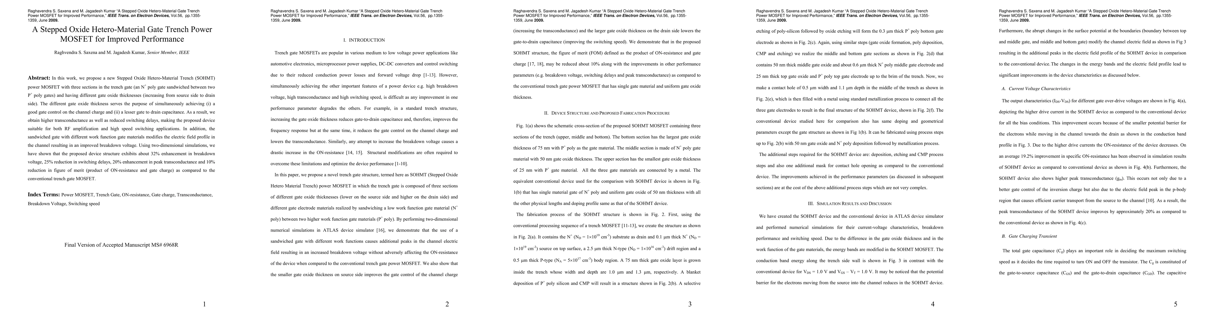 A novel approach to designing stepped oxide hetero-material gate trench power MOSFETs was employed using a combination of numerical simulations and experimental characterization.