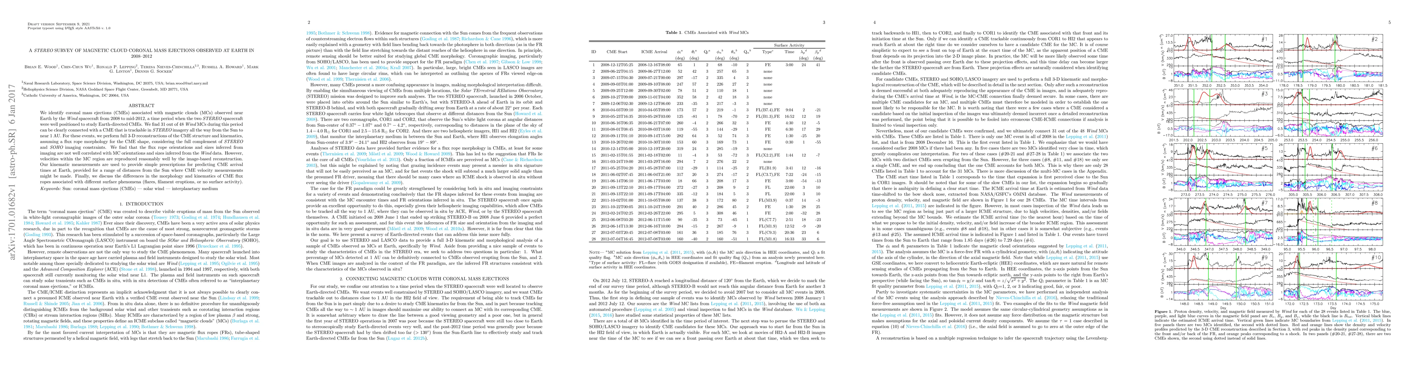The study identifies 31 out of 48 magnetic clouds (MCs) near Earth as originating from Earth-directed CMEs visible in STEREO imagery. Despite discrepancies between imaging-derived CME morphology and sizes versus Wind-derived MC properties, velocities within MCs are well-reproduced. The research provides prescriptions for predicting CME arrival times at Earth and compares CME characteristics linked to different solar surface activities.