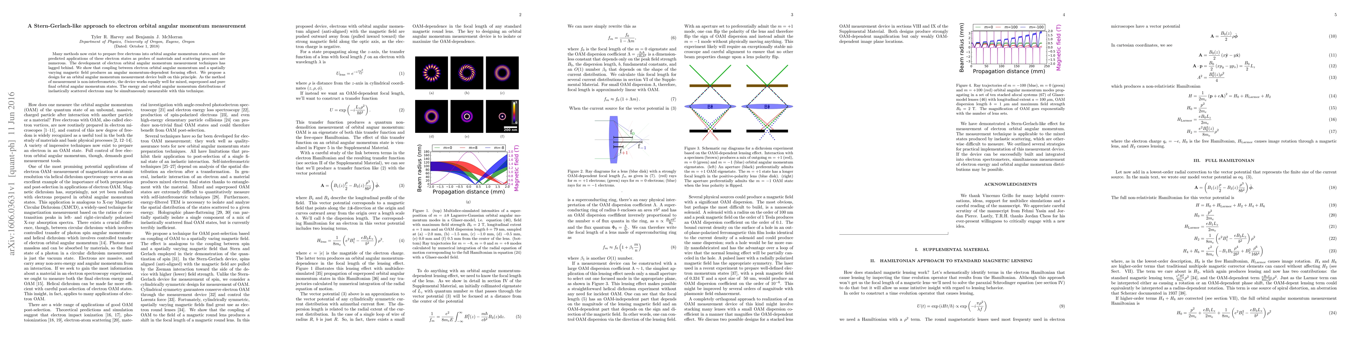 Many methods now exist to prepare free electrons into orbital angular momentum states, and the predicted applications of these electron states as probes of materials and scattering processes are numerous. The development of electron orbital angular momentum measurement techniques has lagged behind. We show that coupling between electron orbital angular momentum and a spatially varying magnetic field produces an angular momentum-dependent focusing effect. We propose a design for an orbital angular momentum measurement device built on this principle. As the method of measurement is non-interferometric, the device works equally well for mixed, superposed and pure final orbital angular momentum states. The energy and orbital angular momentum distributions of inelastically scattered electrons may be simultaneously measurable with this technique.