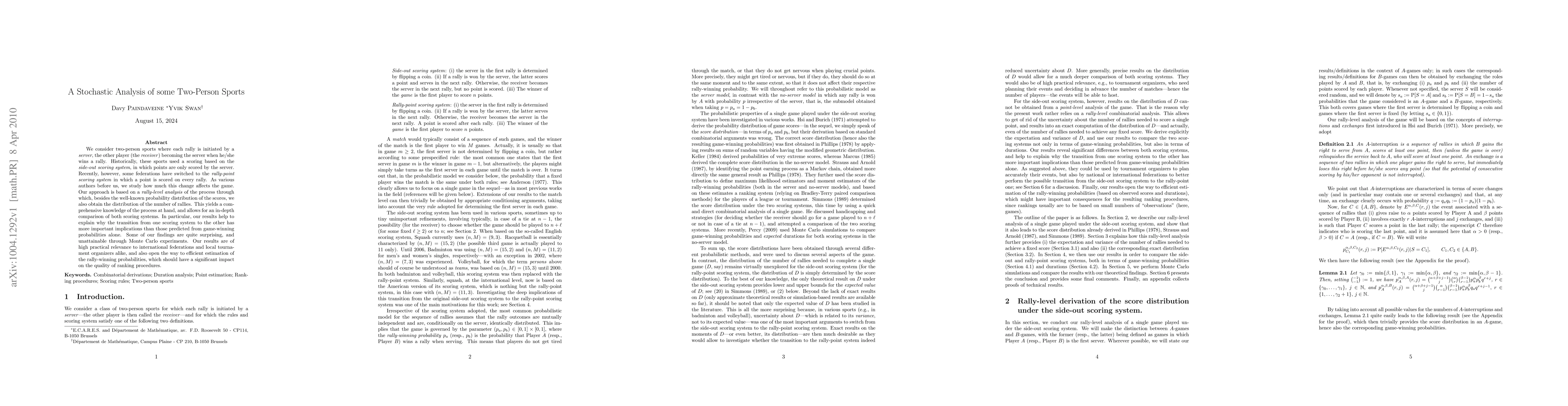 We consider two-person sports where each rally is initiated by a \emph{server}, the other player (the \emph{receiver}) becoming the server when he/she wins a rally. Historically, these sports used a scoring based on the \emph{side-out scoring system}, in which points are only scored by the server. Recently, however, some federations have switched to the \emph{rally-point scoring system} in which a point is scored on every rally. As various authors before us, we study how much this change affects the game. Our approach is based on a \emph{rally-level analysis} of the process through which, besides the well-known probability distribution of the scores, we also obtain the distribution of the number of rallies. This yields a comprehensive knowledge of the process at hand, and allows for an in-depth comparison of both scoring systems. In particular, our results {help} to explain why the transition from one scoring system to the other has more important implications than those predicted from game-winning probabilities alone. Some of our findings are quite surprising, and unattainable through Monte Carlo experiments. Our results are of high practical relevance to international federations and local tournament organizers alike, and also open the way to efficient estimation of the rally-winning probabilities, which should have a significant impact on the quality of ranking procedures.