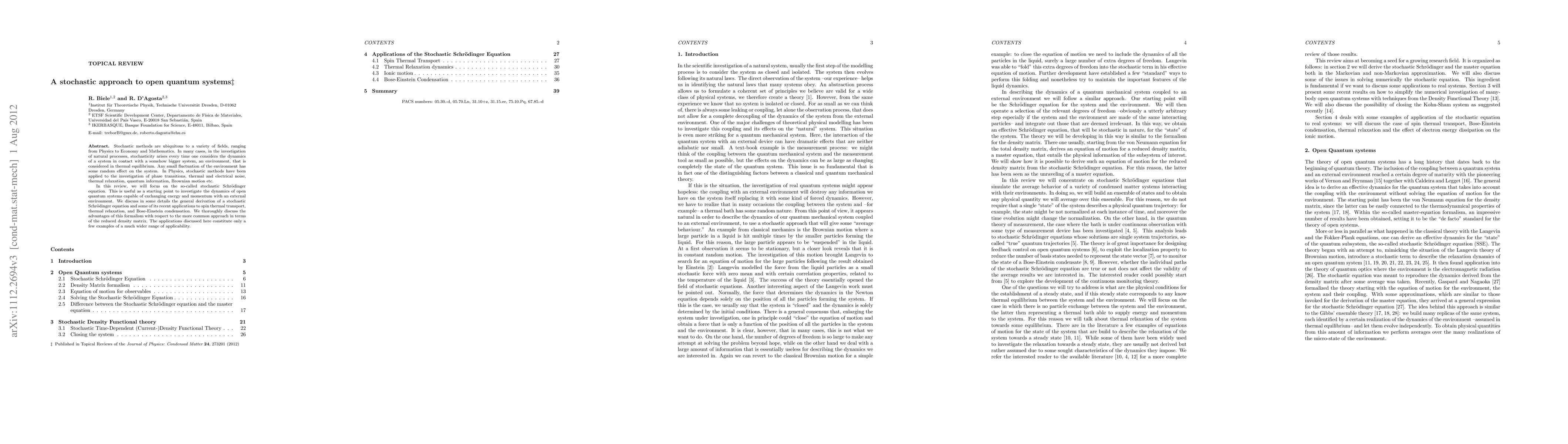 This paper reviews stochastic methods for studying open quantum systems that interact with their environment. It explores the advantages of the stochastic Schr"odinger equation over other approaches for understanding phenomena like thermal relaxation and Bose-Einstein condensation.