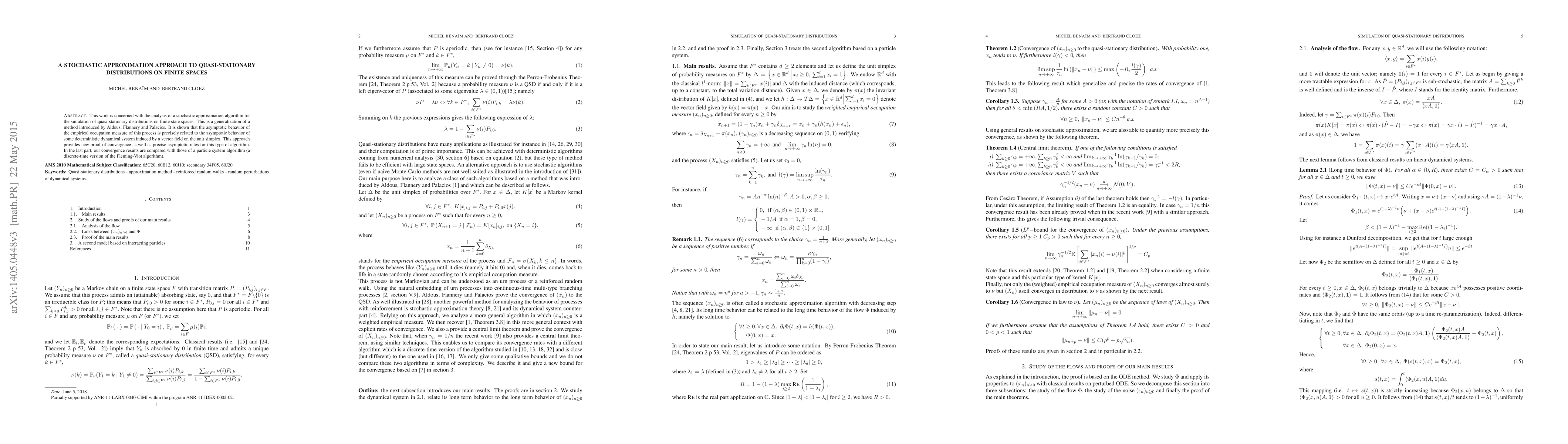 This paper analyzes a stochastic approximation algorithm for simulating quasi-stationary distributions on finite state spaces, providing new proofs of convergence and precise rates. It compares the algorithm's performance with particle system methods.
