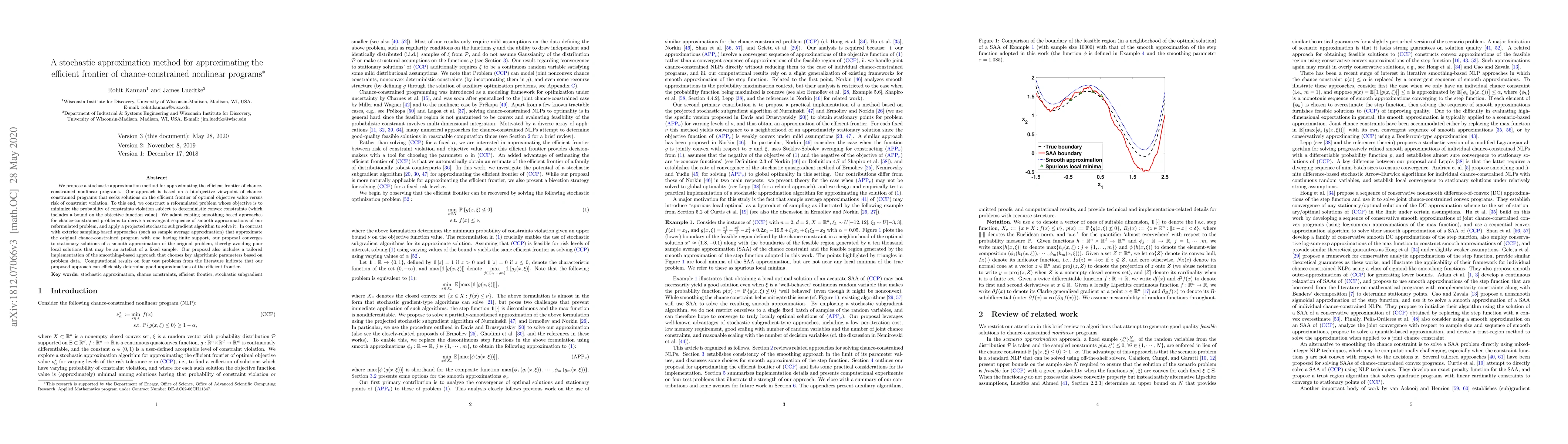 This paper proposes a stochastic approximation method to determine the efficient frontier of chance-constrained nonlinear programs by minimizing the risk of constraint violation. It employs a bi-objective reformulation and a projected stochastic subgradient algorithm, offering a smoother convergence compared to sampling-based methods.