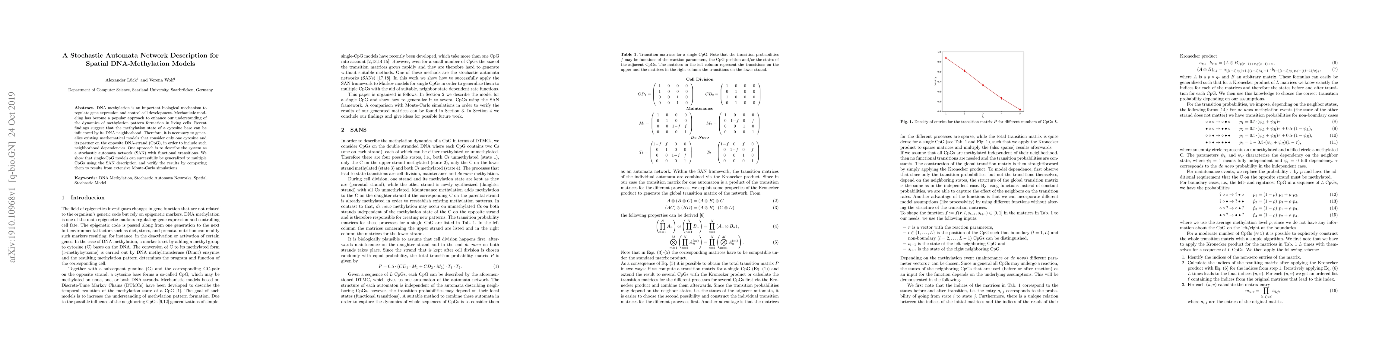 DNA methylation is an important biological mechanism to regulate gene expression and control cell development. Mechanistic modeling has become a popular approach to enhance our understanding of the dynamics of methylation pattern formation in living cells. Recent findings suggest that the methylation state of a cytosine base can be influenced by its DNA neighborhood. Therefore, it is necessary to generalize existing mathematical models that consider only one cytosine and its partner on the opposite DNA-strand (CpG), in order to include such neighborhood dependencies. One approach is to describe the system as a stochastic automata network (SAN) with functional transitions. We show that single-CpG models can successfully be generalized to multiple CpGs using the SAN description and verify the results by comparing them to results from extensive Monte-Carlo simulations.