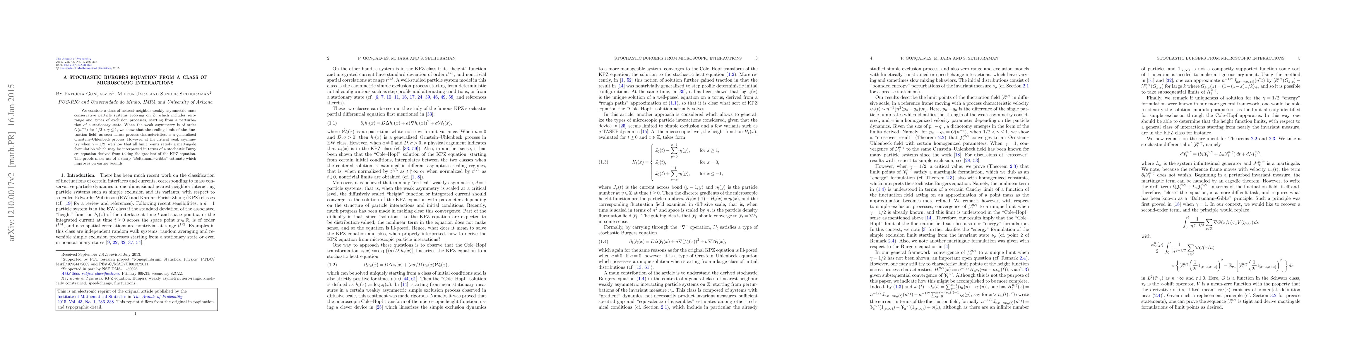 Researchers show that certain microscopic interactions can lead to a stochastic Burgers equation, which describes chaotic behavior in systems with random fluctuations, under specific conditions of weak asymmetry.