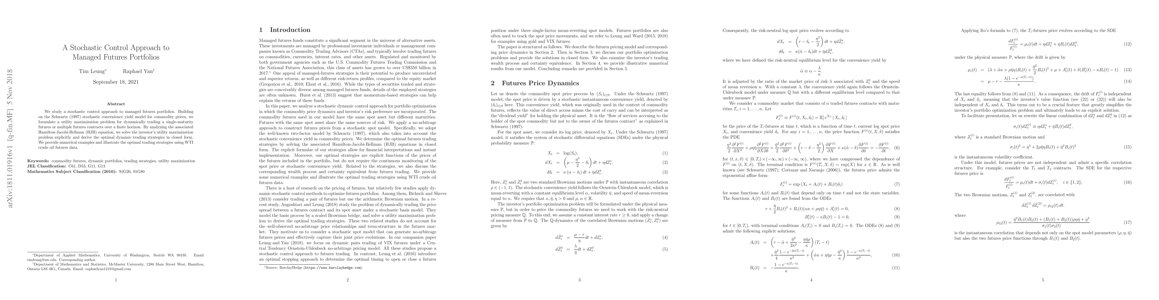 The paper presents a closed-form solution to the utility maximization problem for dynamically trading futures contracts under a stochastic control framework, solving the associated HJB equation explicitly and deriving optimal trading strategies.