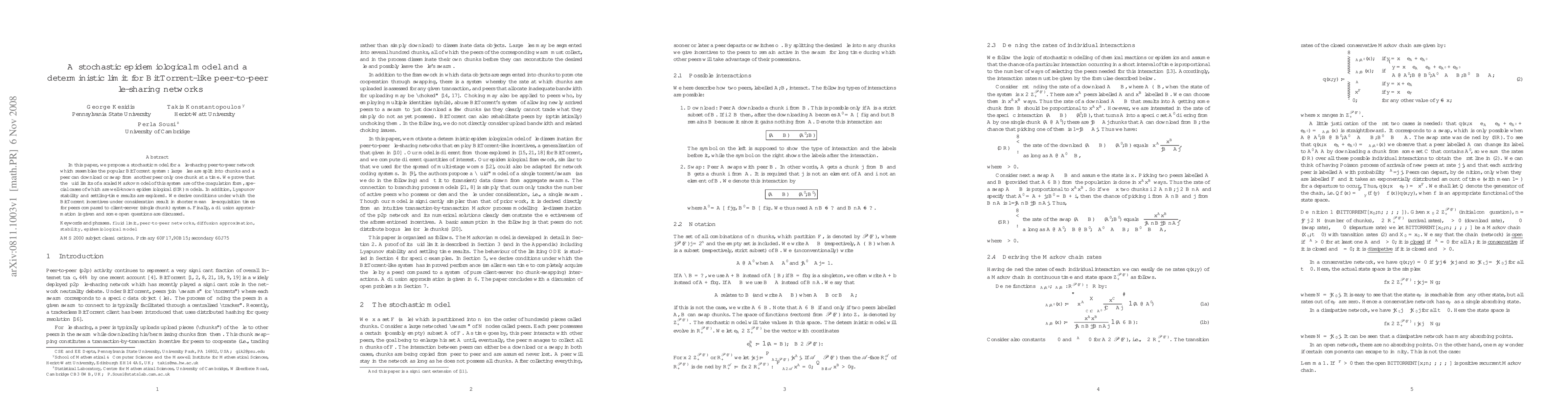 This paper proposes a stochastic model for BitTorrent-like peer-to-peer file-sharing networks, showing that its fluid limits resemble epidemiological SIR models. It also explores stability and settling-time results, demonstrating that BitTorrent incentives can reduce mean file-acquisition times compared to client-server systems.