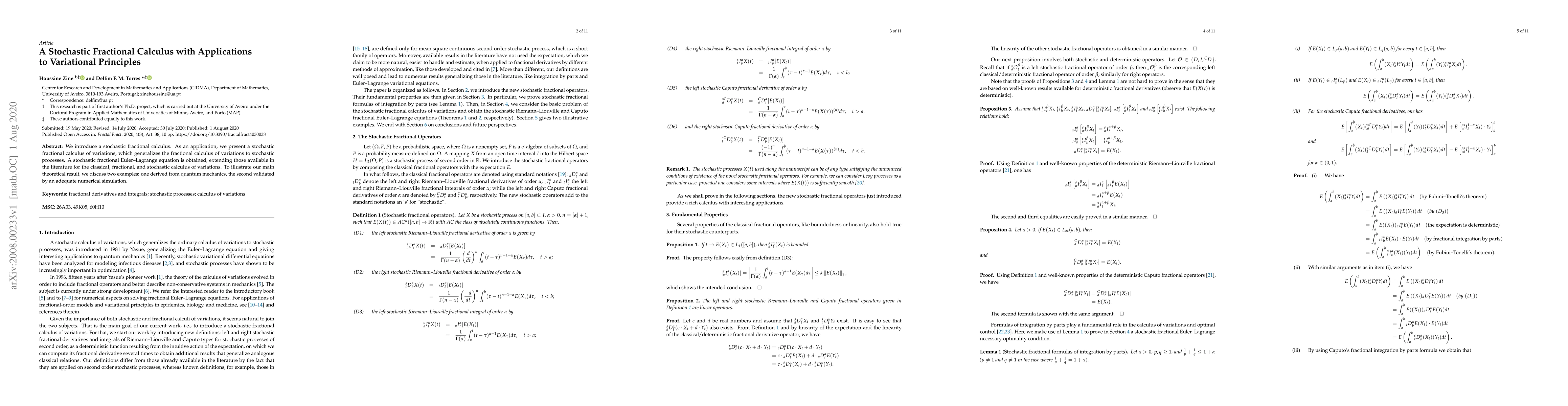 This paper introduces a stochastic fractional calculus and applies it to variational principles, presenting a stochastic fractional calculus of variations. It derives a stochastic fractional Euler-Lagrange equation and validates the theory with examples from quantum mechanics and numerical simulations.