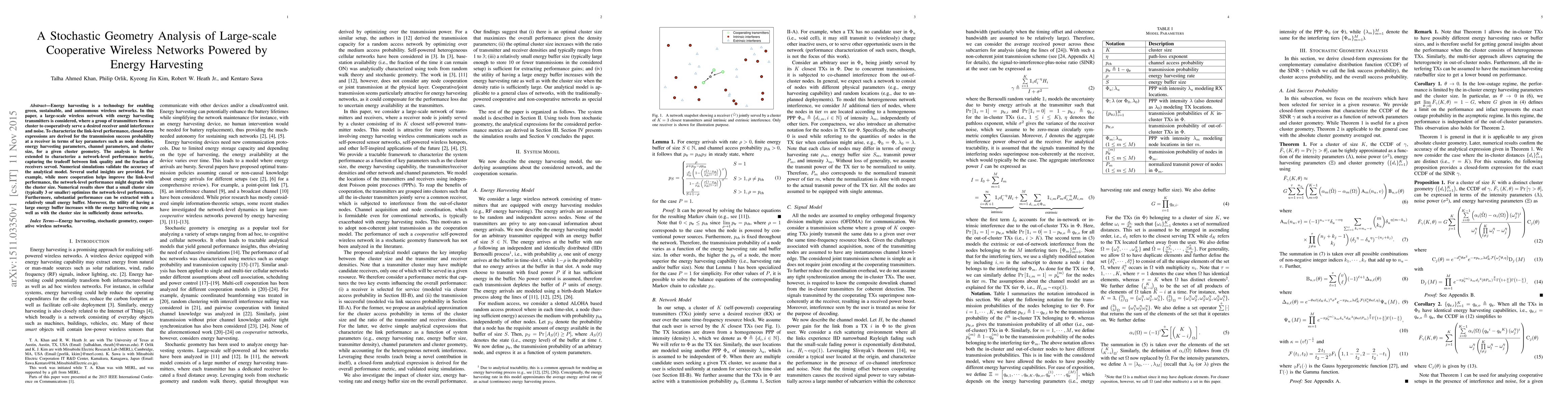 This paper uses stochastic geometry to analyze the performance of large-scale wireless networks where transmitters harvest energy to cooperatively serve receivers. It derives closed-form expressions for transmission success probability and network-level performance, revealing that while cooperation improves link-level performance, network-level performance is optimized with small cluster sizes and benefits from a moderate energy buffer.