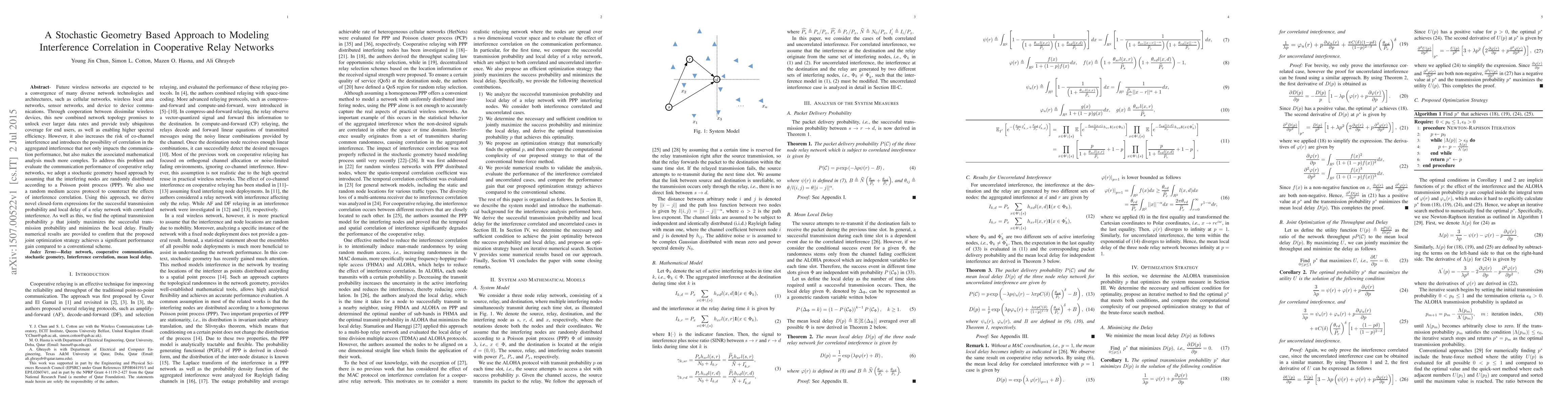 This paper proposes a stochastic geometry approach to model interference correlation in cooperative relay networks, using a Poisson point process to represent randomly distributed interfering nodes. It derives closed-form expressions for successful transmission probability and local delay, and finds the optimal transmission probability to maximize performance, demonstrating significant gains over conventional methods.