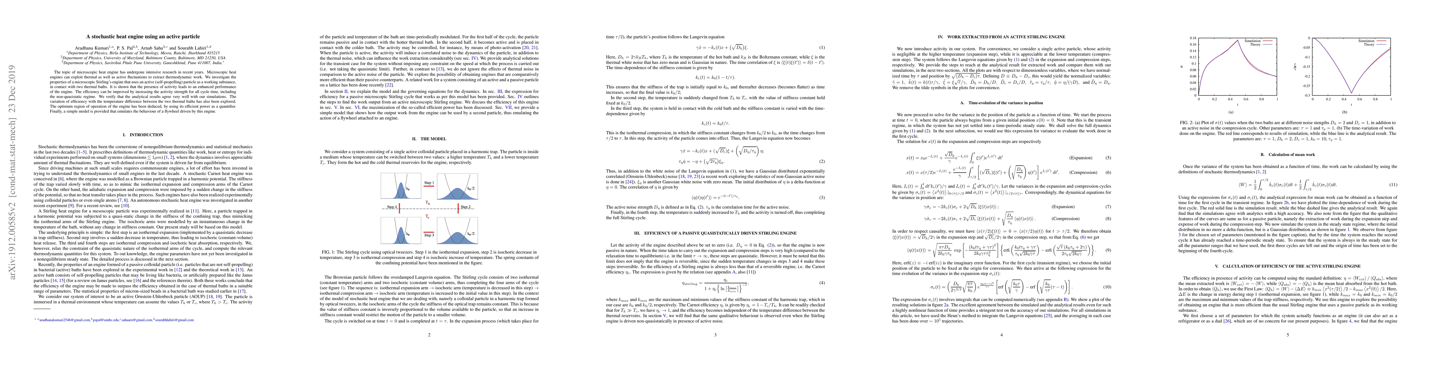 This paper explores a microscopic Stirling heat engine utilizing an active particle, demonstrating enhanced performance and efficiency due to the particle's self-propulsion. The study finds that increased activity strength improves efficiency across various cycle times, and provides a model to emulate the engine's behavior akin to a flywheel.