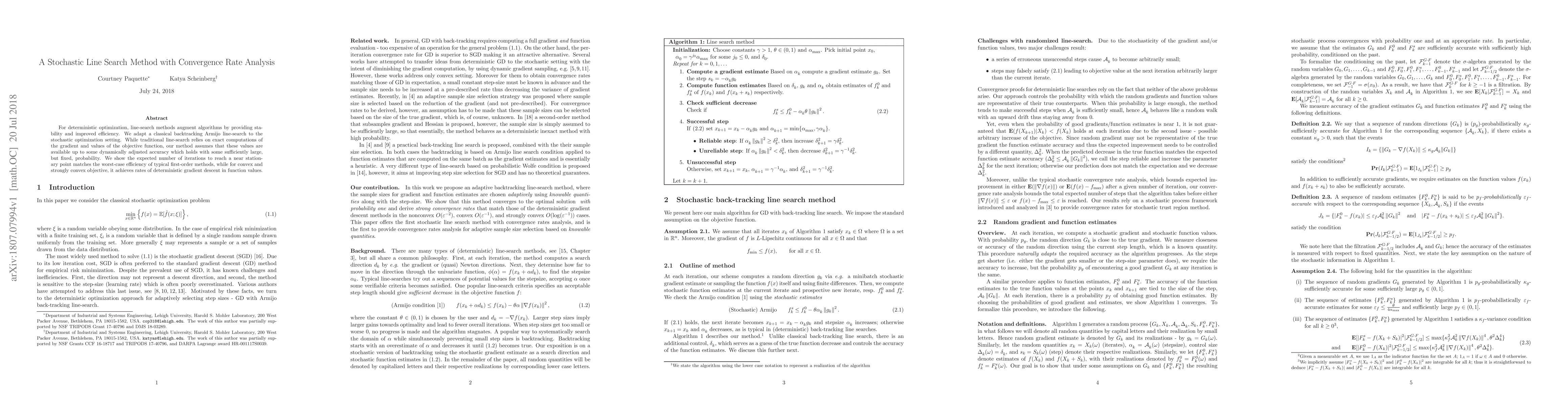 This paper proposes a stochastic line search method for optimization problems, showing it achieves convergence rates comparable to deterministic gradient descent in some cases, while matching the worst-case efficiency of typical first-order methods in others.