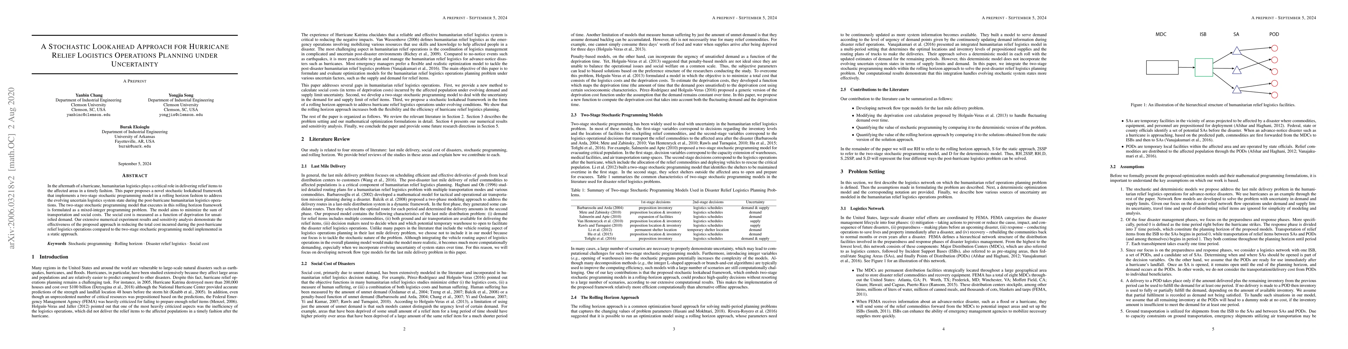 This paper introduces a stochastic lookahead framework for hurricane relief logistics planning, utilizing a two-stage stochastic programming model in a rolling horizon to manage uncertainties. The proposed model minimizes transportation and social costs, showing effectiveness through numerical experiments compared to static approaches.