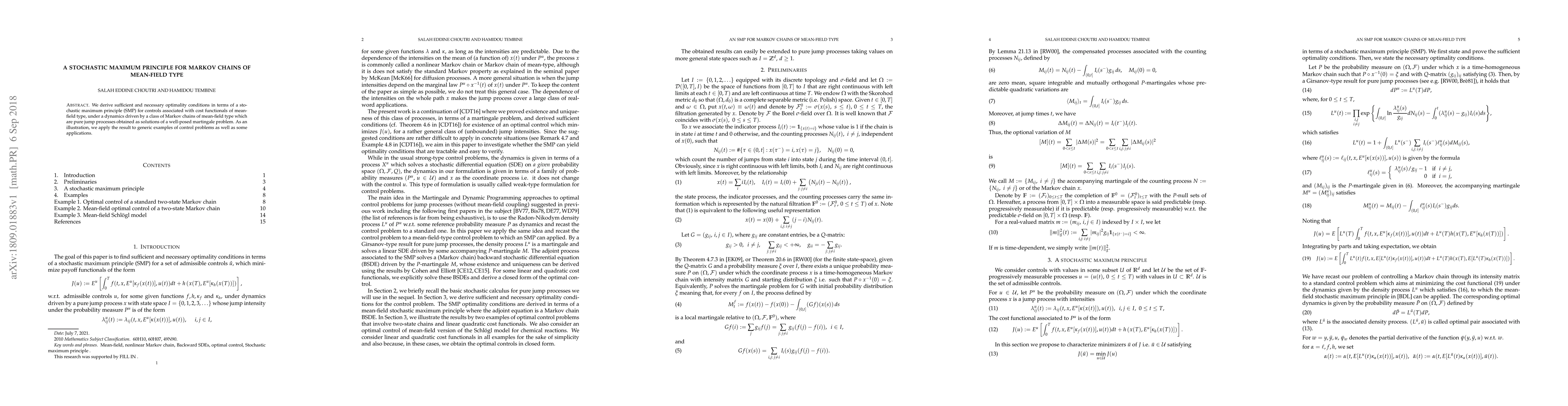 We derive sufficient and necessary optimality conditions in terms of a stochastic maximum principle (SMP) for controls associated with cost functionals of mean-field type, under dynamics driven by a class of Markov chains of mean-field type which are pure jump processes obtained as solutions of a well-posed martingale problem. As an illustration, we apply the result to generic examples of control problems as well as some applications.