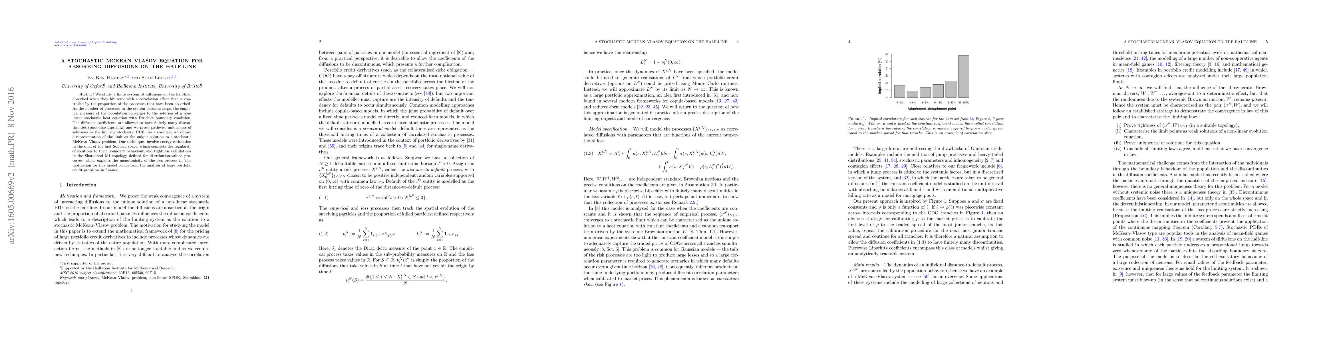 We study a finite system of diffusions on the half-line, absorbed when they hit zero, with a correlation effect that is controlled by the proportion of the processes that have been absorbed. As the number of processes in the system becomes large, the empirical measure of the population converges to the solution of a non-linear stochastic heat equation with Dirichlet boundary condition. The diffusion coefficients are allowed to have finitely many discontinuities (piecewise Lipschitz) and we prove pathwise uniqueness of solutions to the limiting stochastic PDE. As a corollary we obtain a representation of the limit as the unique solution to a stochastic McKean--Vlasov problem. Our techniques involve energy estimation in the dual of the first Sobolev space, which connects the regularity of solutions to their boundary behaviour, and tightness calculations in the Skorokhod M1 topology defined for distribution-valued processes, which exploits the monotonicity of the loss process $L$. The motivation for this model comes from the analysis of large portfolio credit problems in finance.