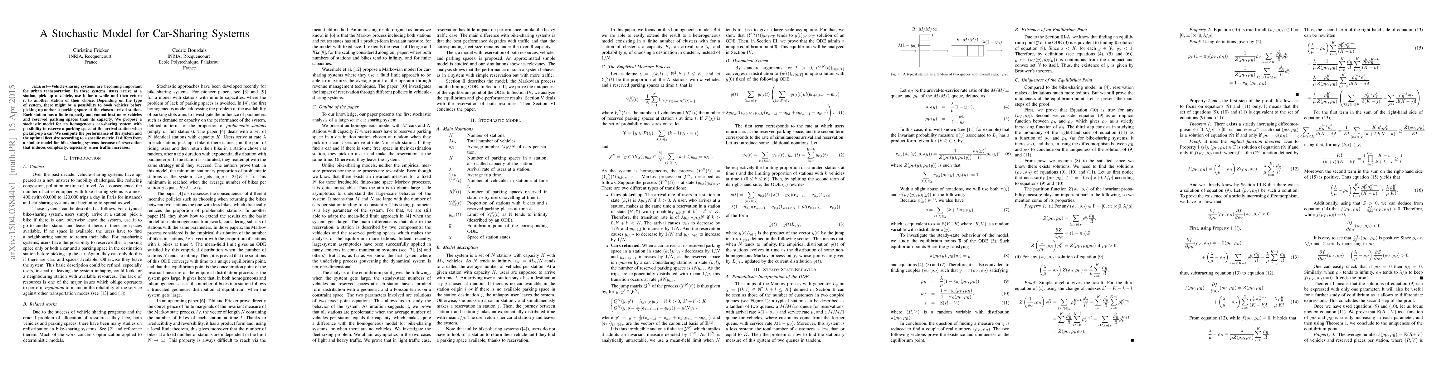 This paper proposes a stochastic model for homogeneous car-sharing systems allowing users to reserve parking spaces upon vehicle pickup. The study evaluates system performance and determines the optimal fleet size based on specific metrics, highlighting differences from bike-sharing models due to the added complexity of reservations.